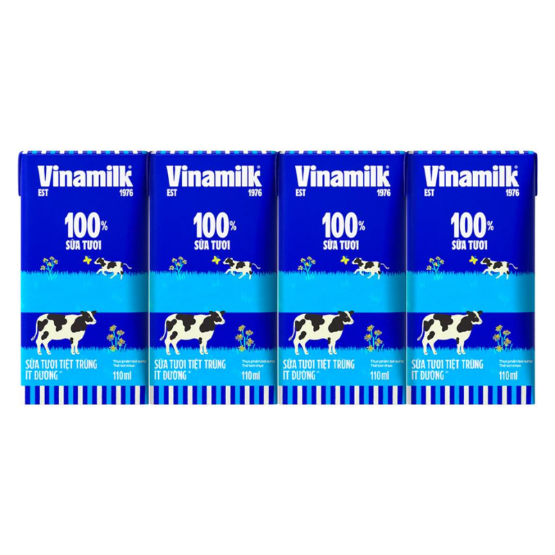 1 Lốc 4 Hộp Sữa Tươi Tiệt Trùng VINAMILK Ít Đường 110ml/Hộp
