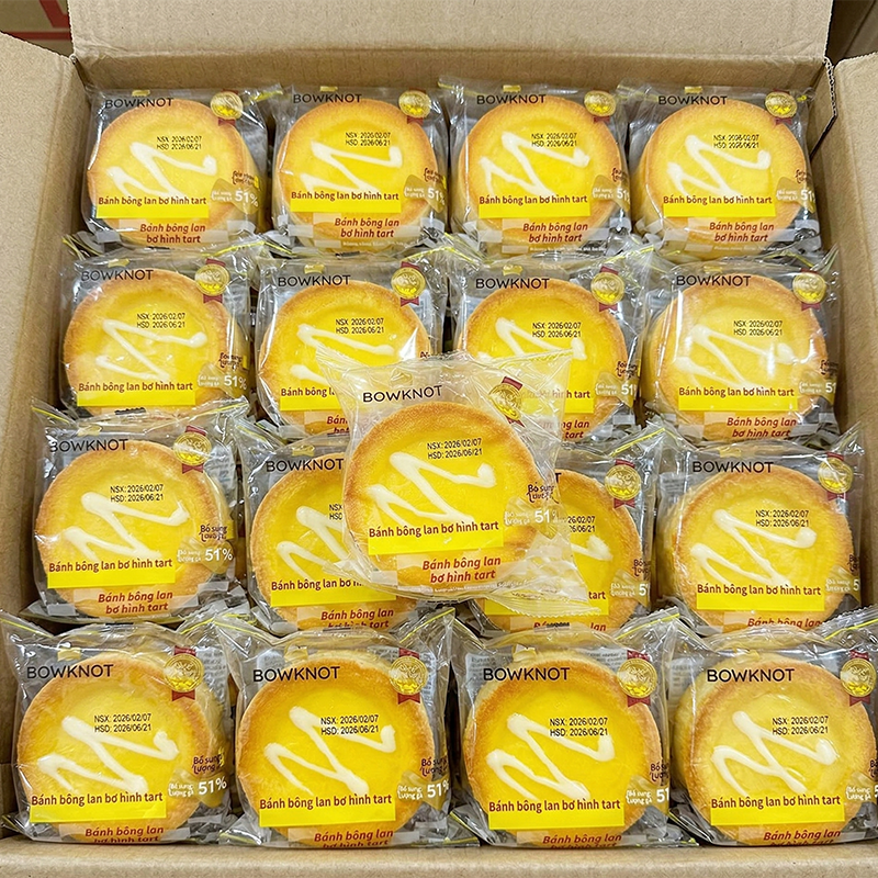 1 Thùng Bánh Bông Lan BOWKNOT Phô Mai Hình Tart – Thùng 24 Cái