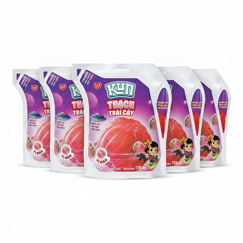 5 Túi Thạch Trái Cây KUN Vị Đào 110ml/Túi
