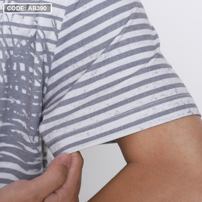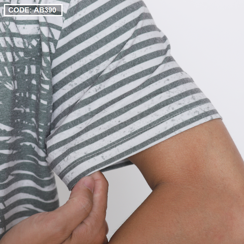 Giá sỉ áo Thun Nam Sọc Cổ Tròn In Họa Tiết Lá Dừa
