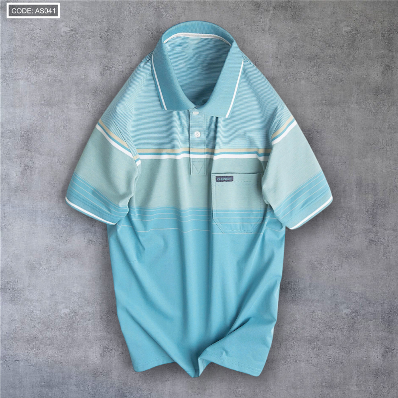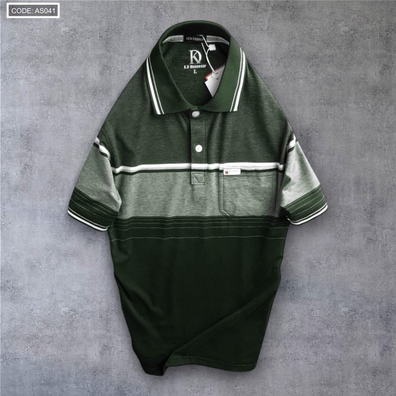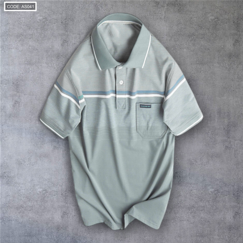 Áo Thun Sọc Nam Có Cổ Phối Viền Có Túi Thun Cotton
