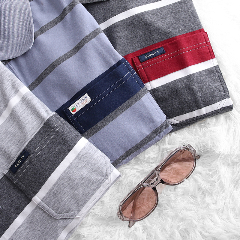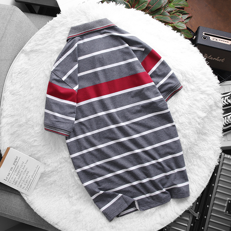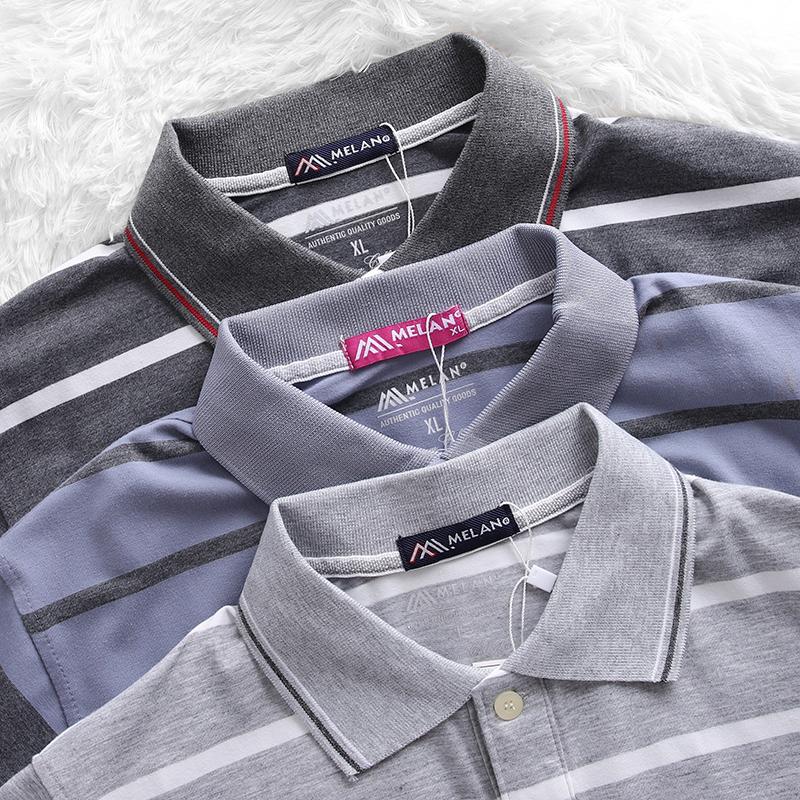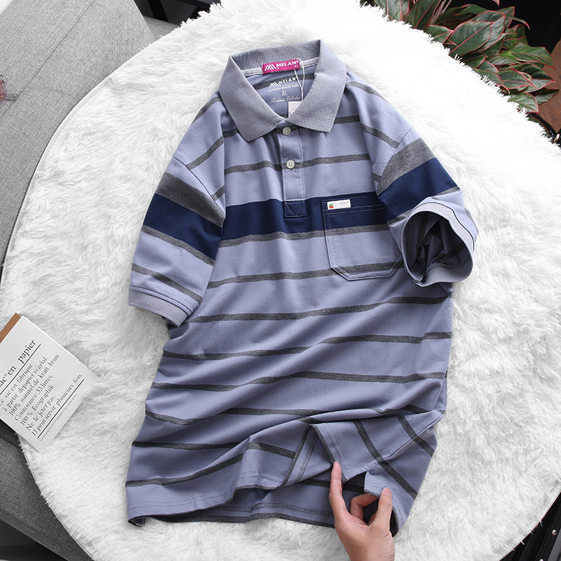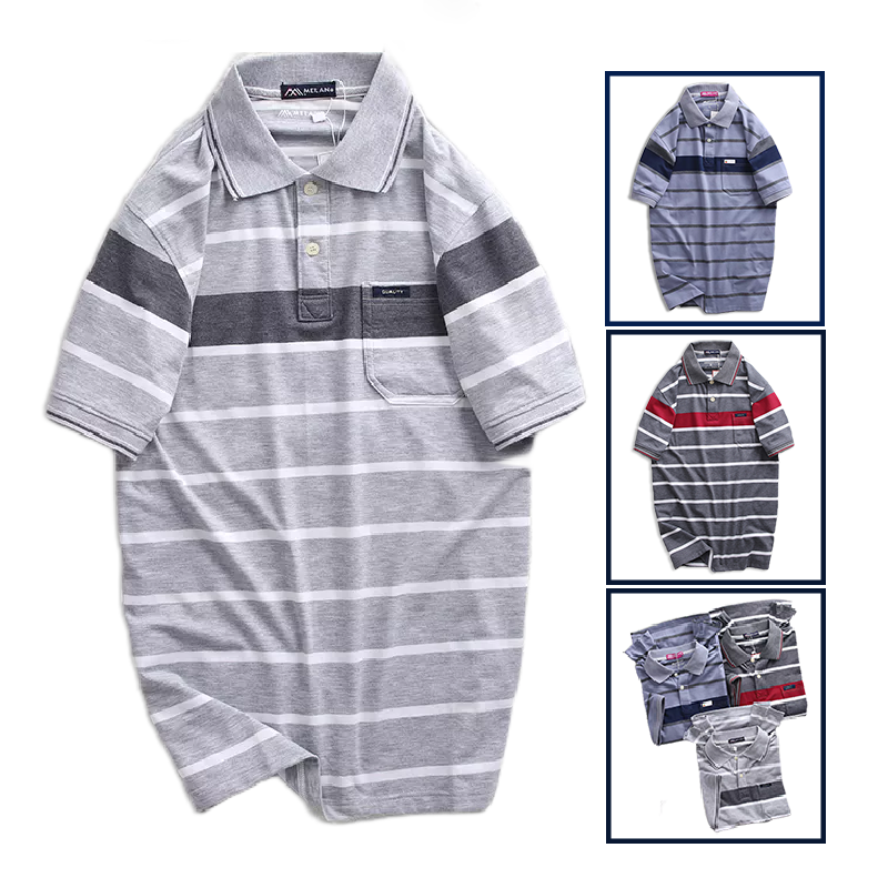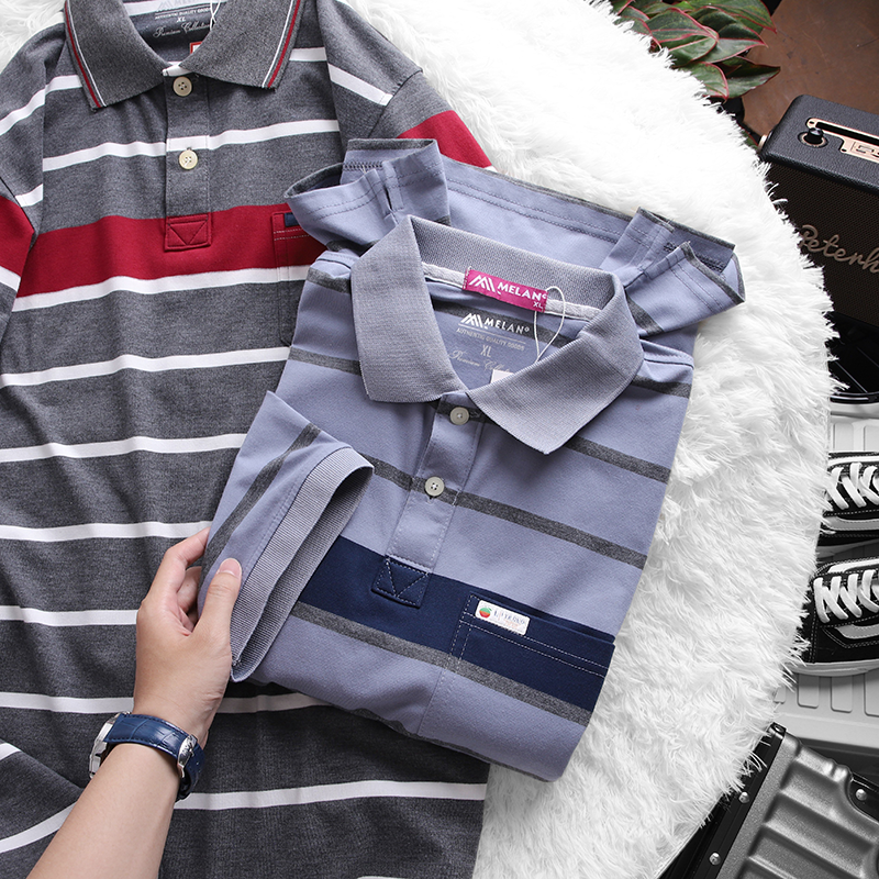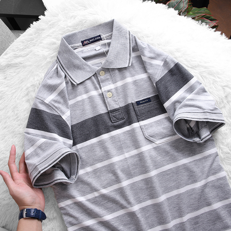 Áo Thun Sọc Nam Melan Cổ Bẻ Có Túi Thun Cotton