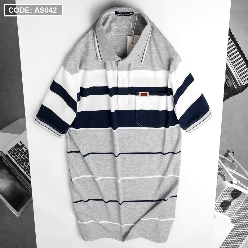 Áo Thun Sọc Nam Trung Niên Cổ Bẻ Có Túi