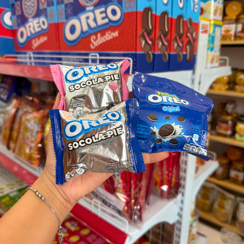 Bánh Oreo Pie (Vị Dâu, Socola, Vani) – Bánh Kinh Đô Oreo 374.4g (15 Gói) – Kèm Túi