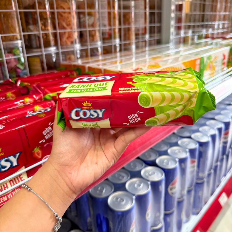 Bánh Quế Cosy (Vị Kem Lá Dứa, Vị Socola, Vị Dâu, Xoài Xí Muội) – Bánh Kinh Đô Cosy 117.6g/Túi