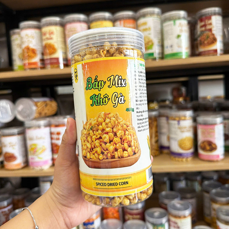 Bắp Giòn Gà Cay (Bắp Mix Khô Gà) 400g – Hộp Pet