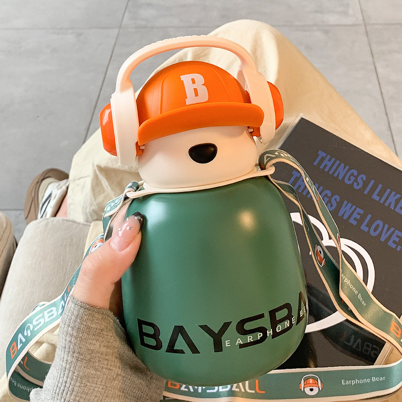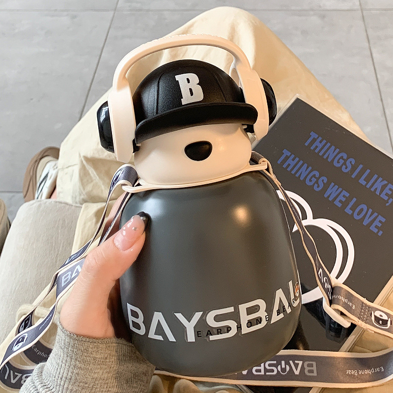 Bình Nước Giữ Nhiệt Hình Gấu Chữ B 460ml 18x10cm
