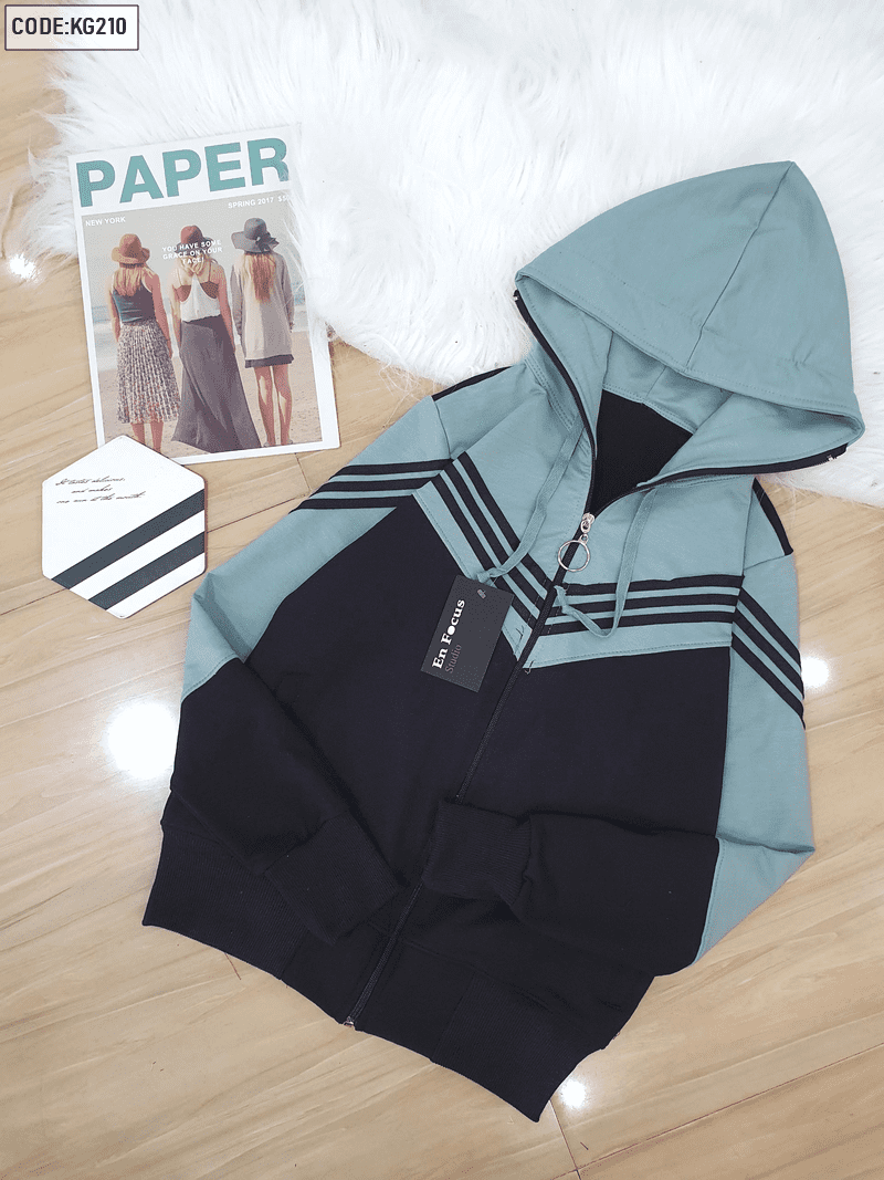 Thiết kế freesize, form dáng 40-60kg, thiết kế có nón rộng, tay xỏ ngón, 2 túi ngoài có dây kéo khóa, 2 túi trong to để vừa đt