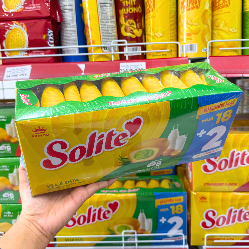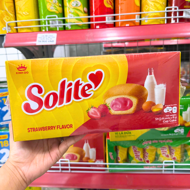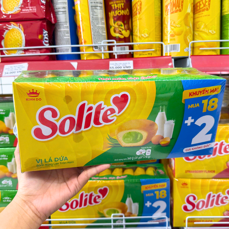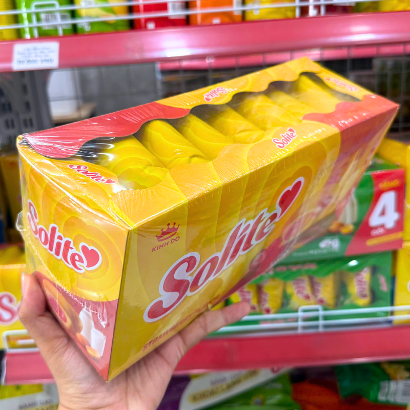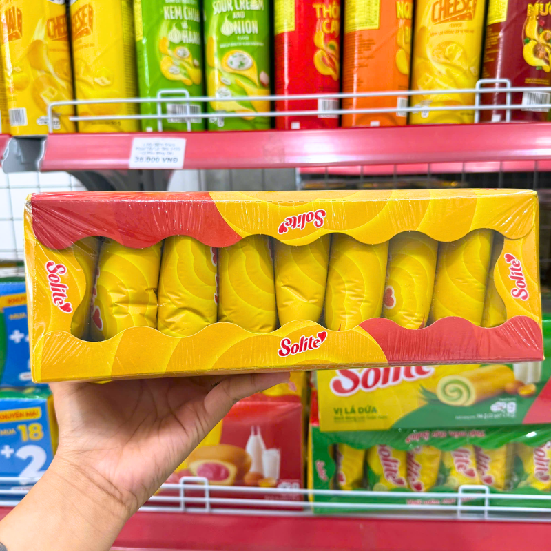 Bỏ sỉ bánh Bông Lan Cuộn Kem Solite 3 Vị (Lá Dứa, Bơ Sữa, Dâu) – Hộp 360g