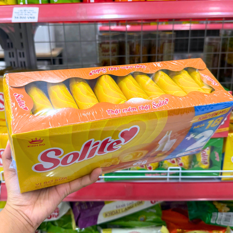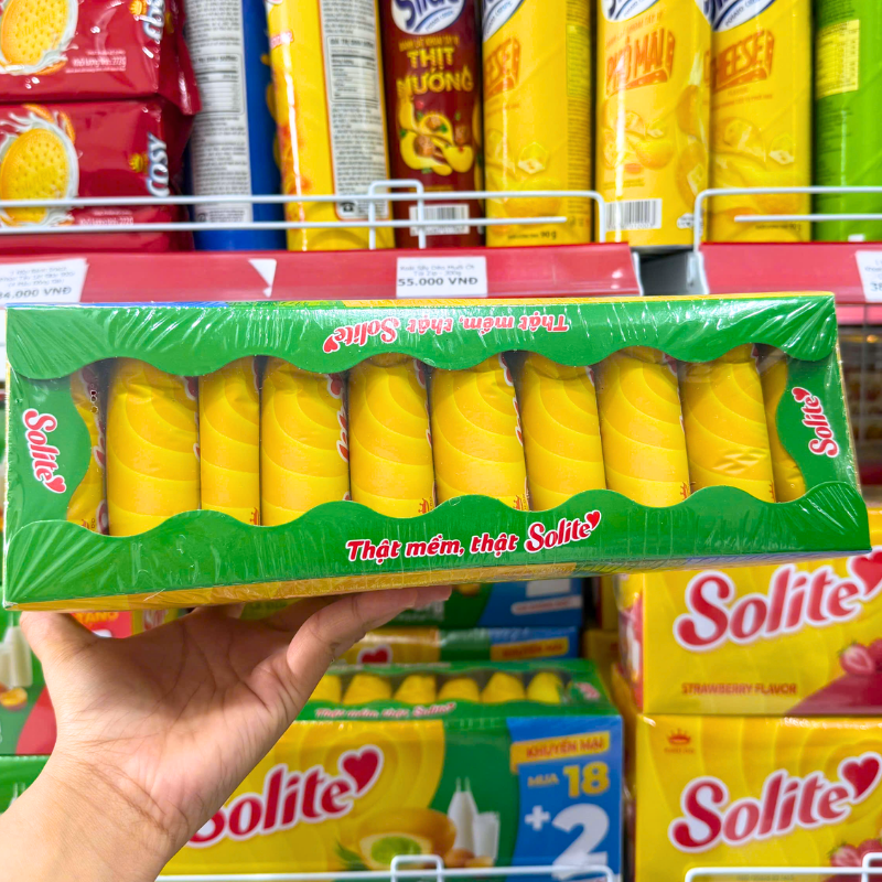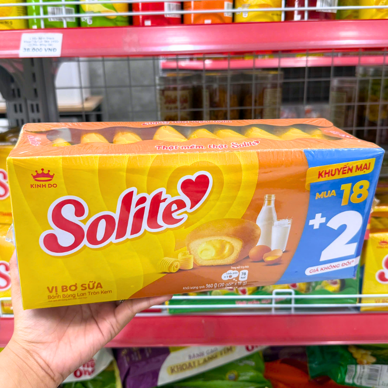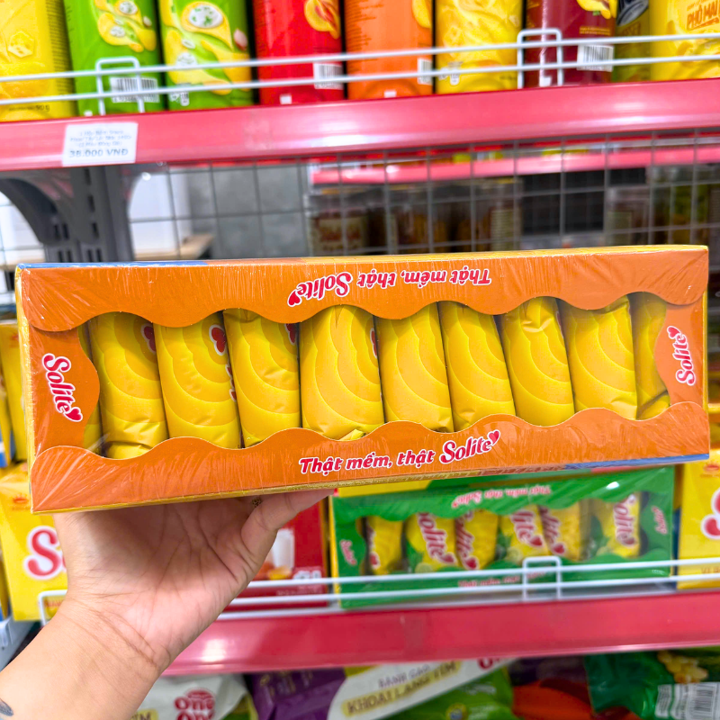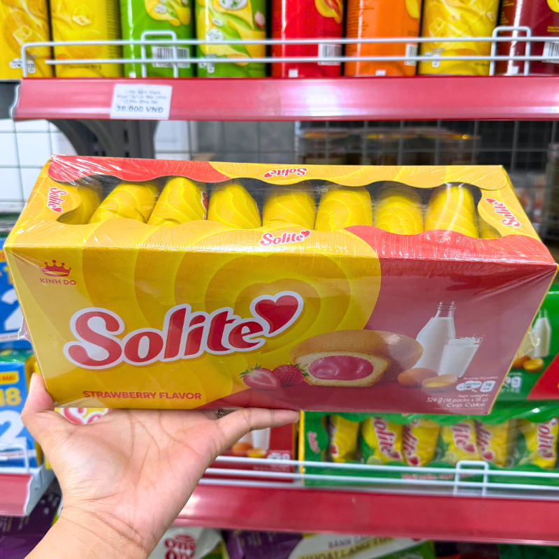Bỏ sỉ bánh Bông Lan Cuộn Kem Solite 3 Vị (Lá Dứa, Bơ Sữa, Dâu) – Hộp 360g