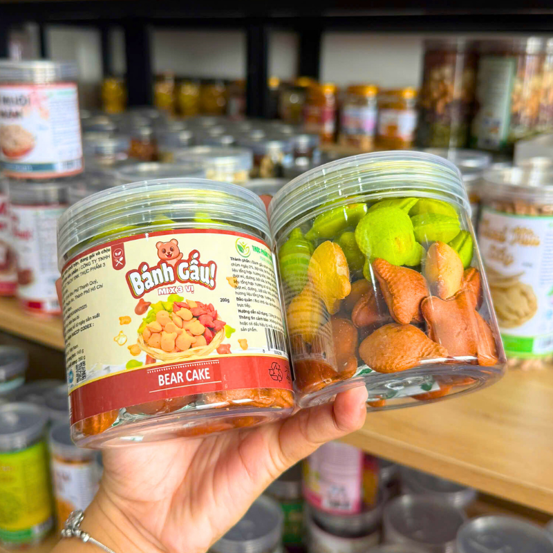 Bỏ sỉ bánh Gấu Mix 3 Vị (Truyền Thống – Socola – Chùm Ngây) Mini 200g – Hộp Pet