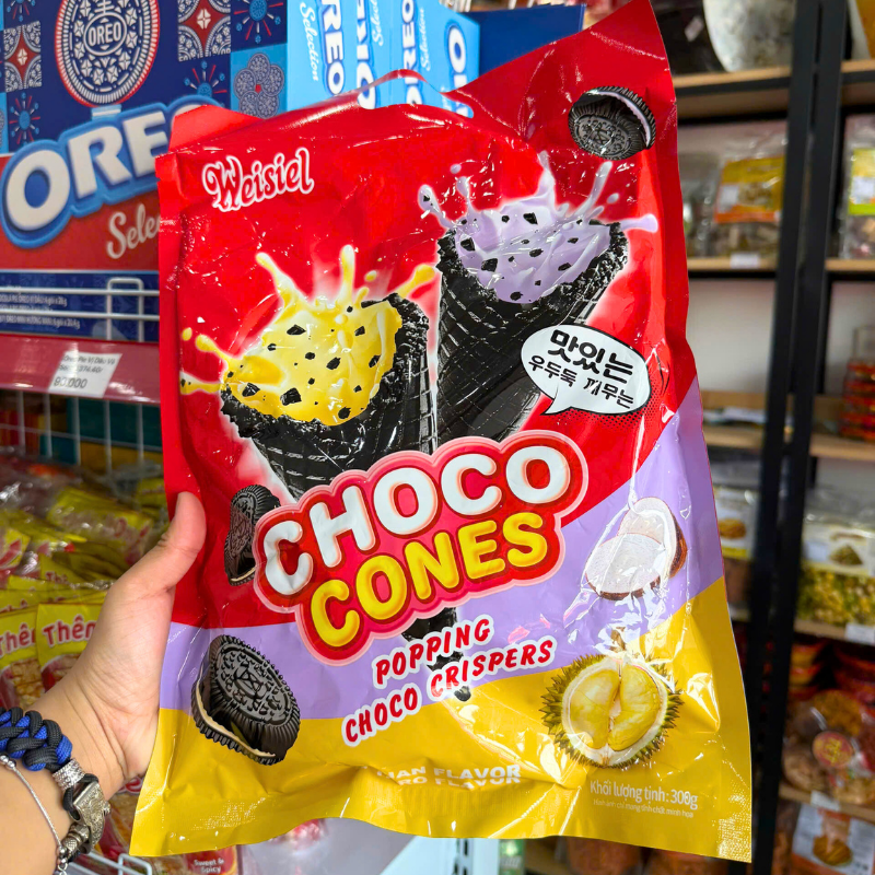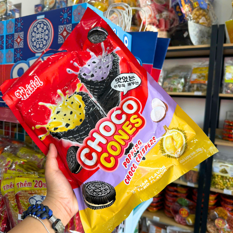 Bỏ sỉ bánh Kem Ốc Quế WEISIEL (Hương Khoai Môn – Sầu Riêng) 300g