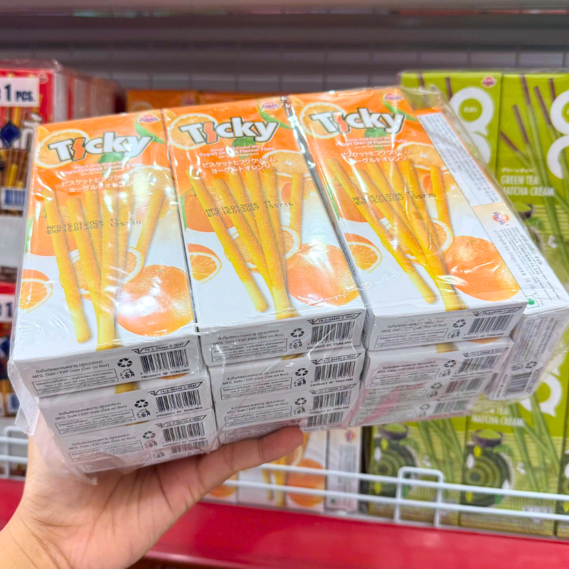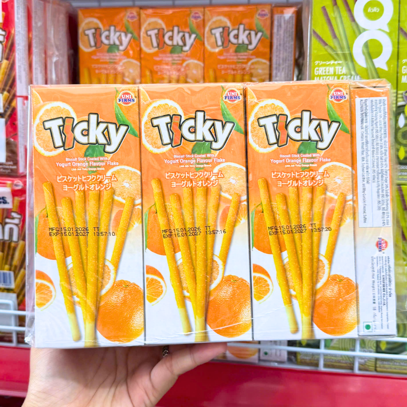 Bỏ sỉ bánh Que Đũa Phủ Yogurt Cam Ticky Uni Firms Lốc 13 Hộp – Màu Cam