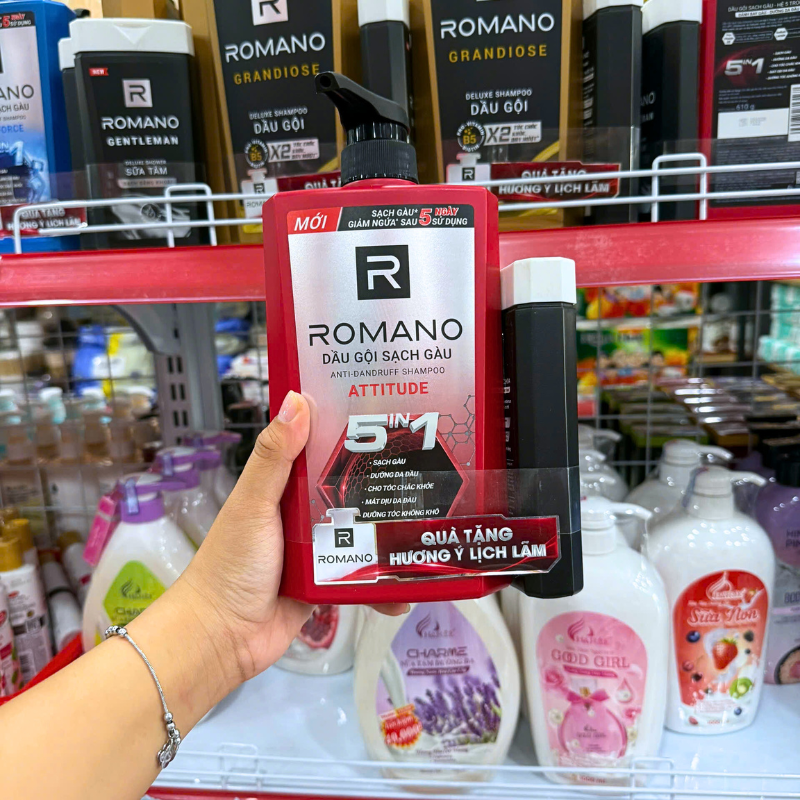 Bỏ sỉ dầu Gội Romano Sạch Gàu Anti – Dandruff Shampoo Attitude 5 In 1 650g – Dầu Gội Nam Chai Đỏ (Tặng Sữa Tắm Sạch Sảng Khoái)