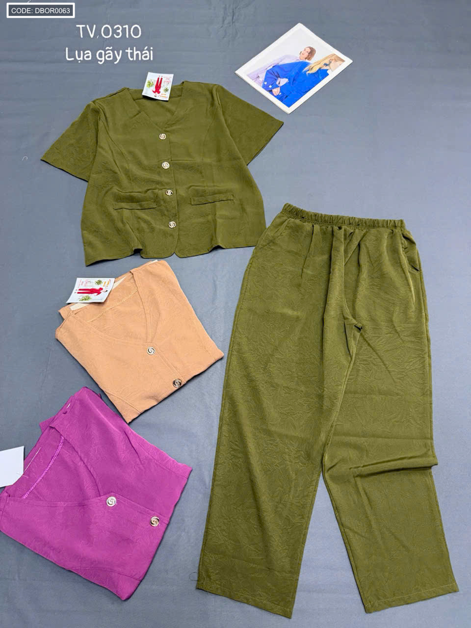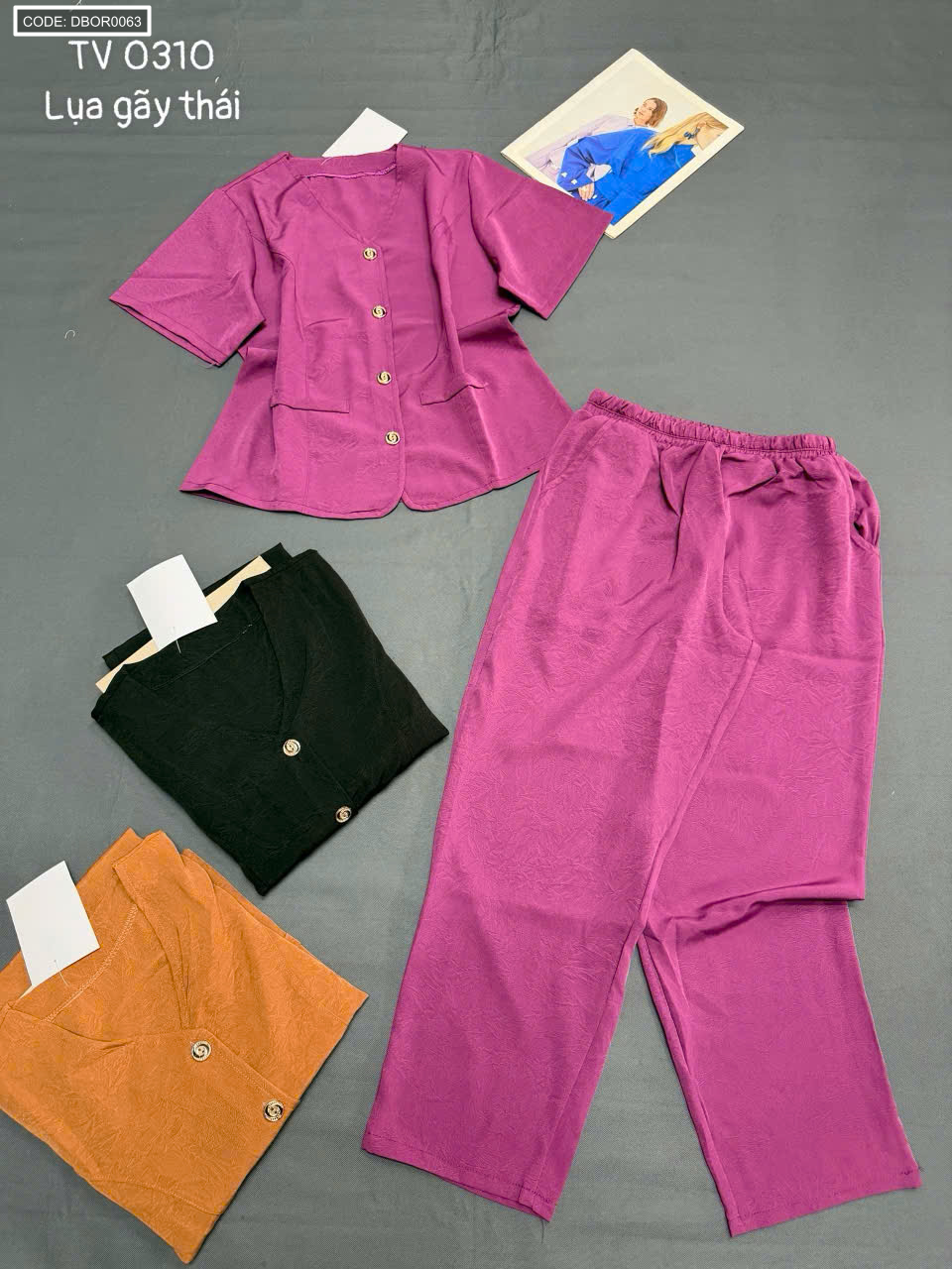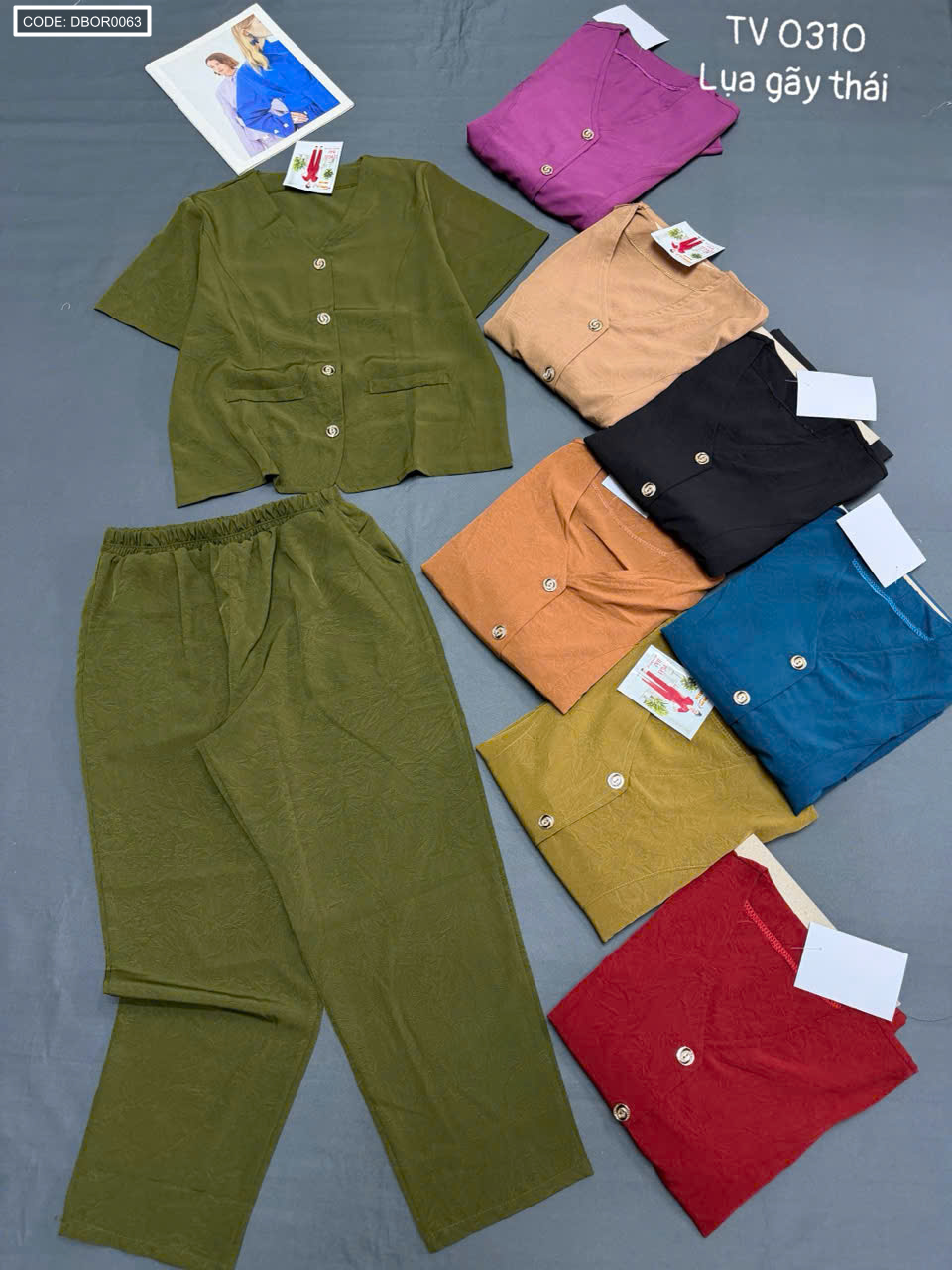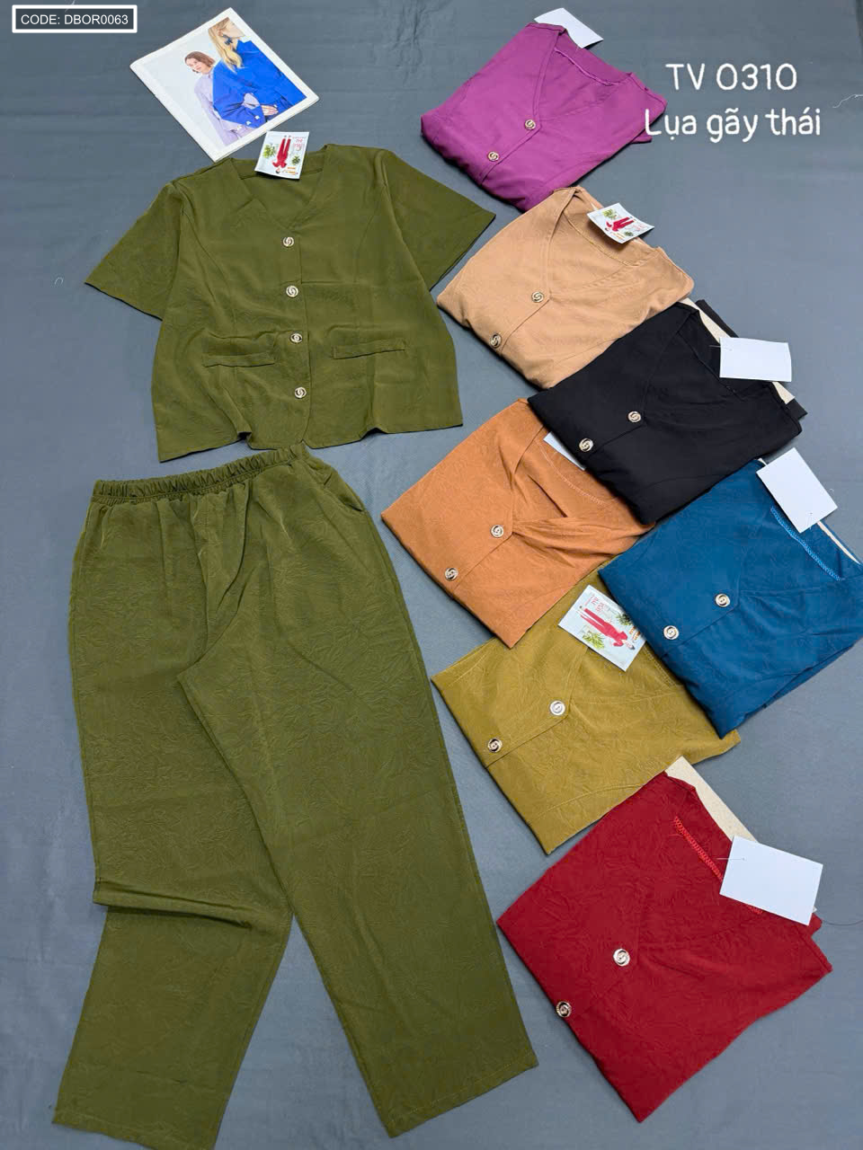 Bỏ sỉ đồ bộ nữ tay ngắn quần dài cổ tim TV 0310