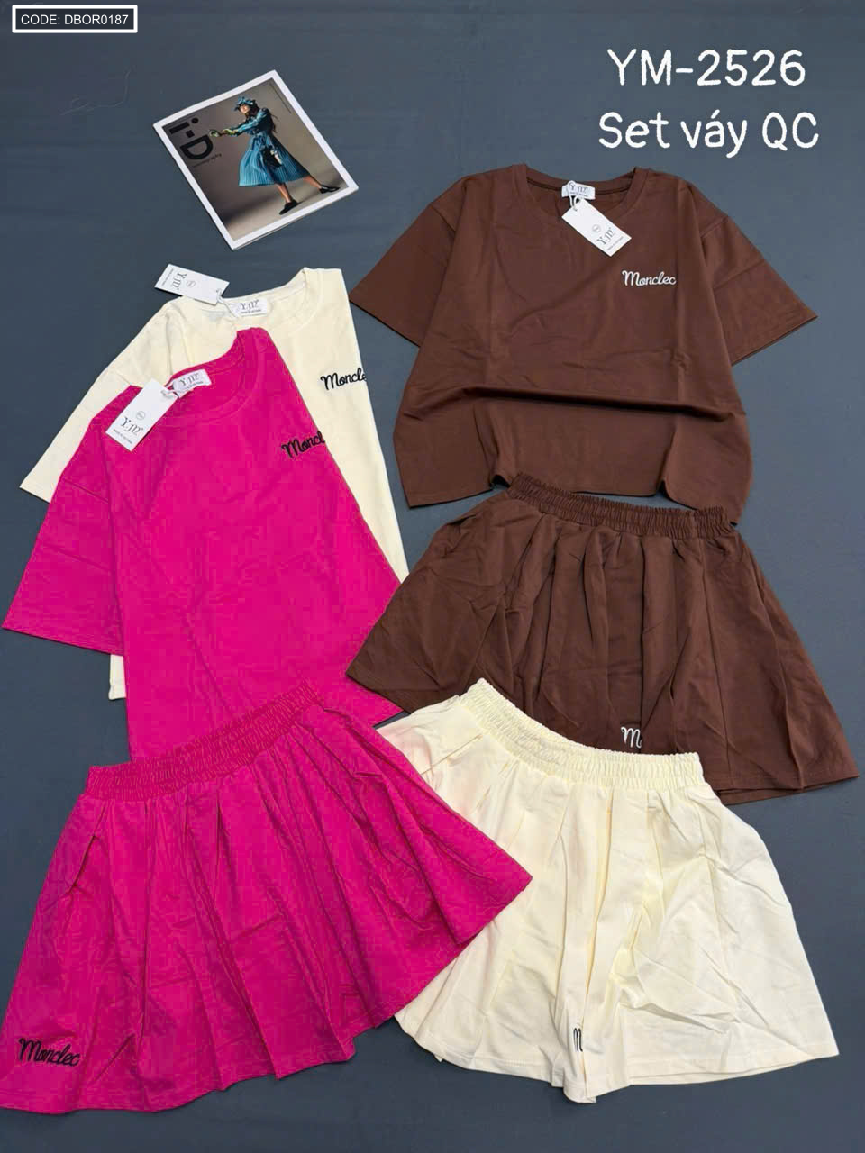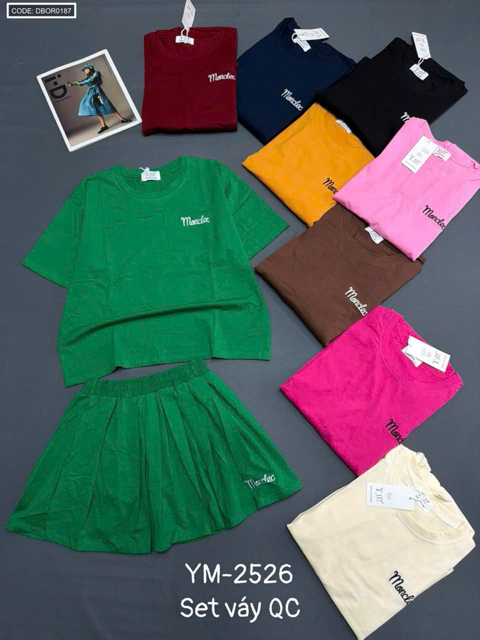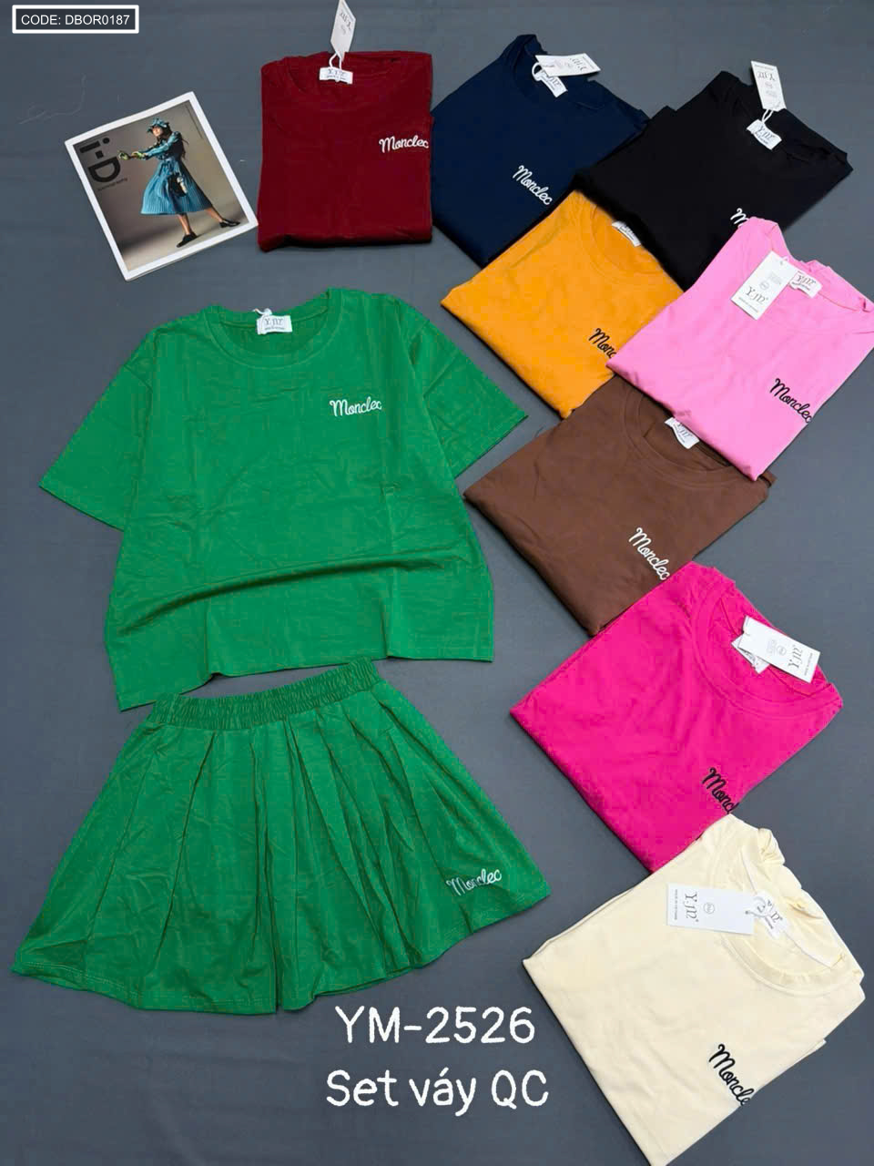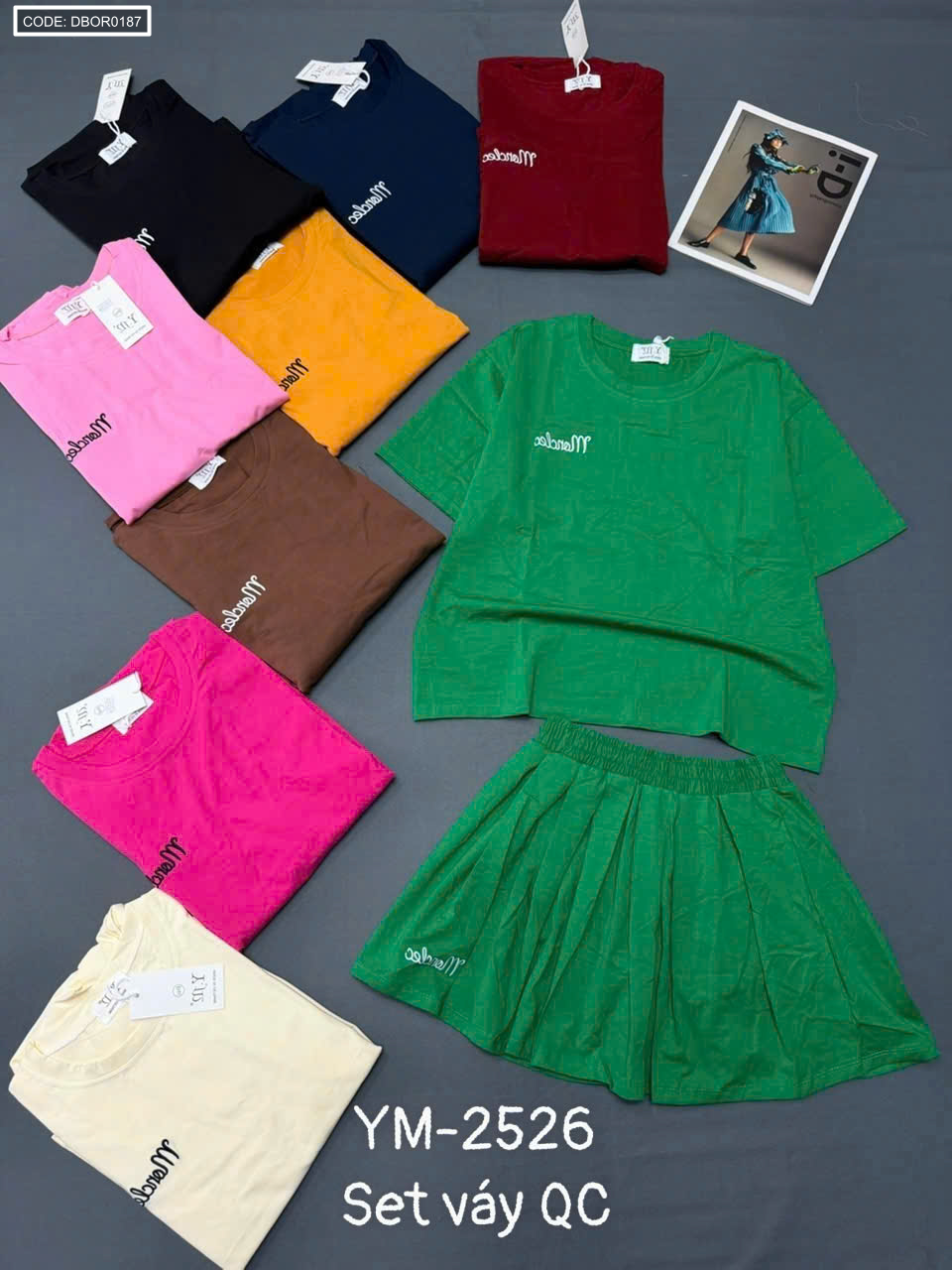 Bỏ sỉ đồ bộ nữ tay ngắn quần vái in chữ Set váy QC YM-2526