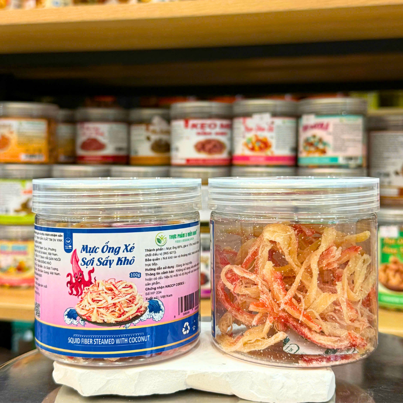 Bỏ sỉ mực Ống Xé Sợi Sấy Khô (Mực Dừa) Mini 100g – Hộp Pet