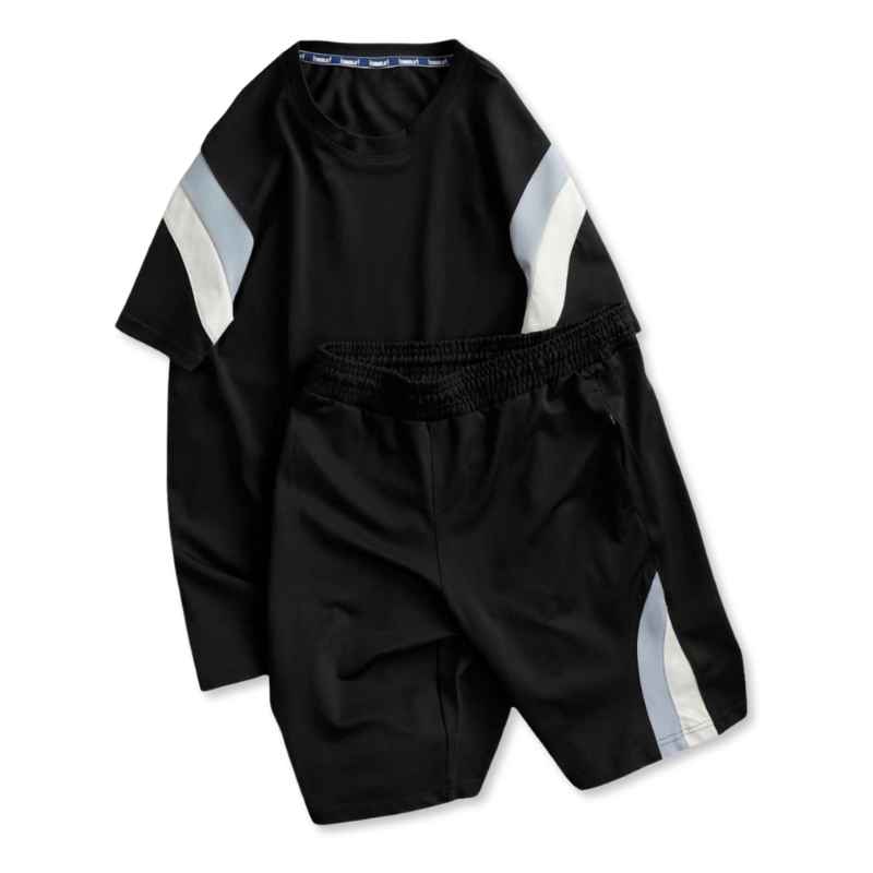 Set Bộ Nam Áo Thun Cổ Tròn Phối Sọc Màu + Quần Short Thun Thể Thao Cao Cấp (Big Size)