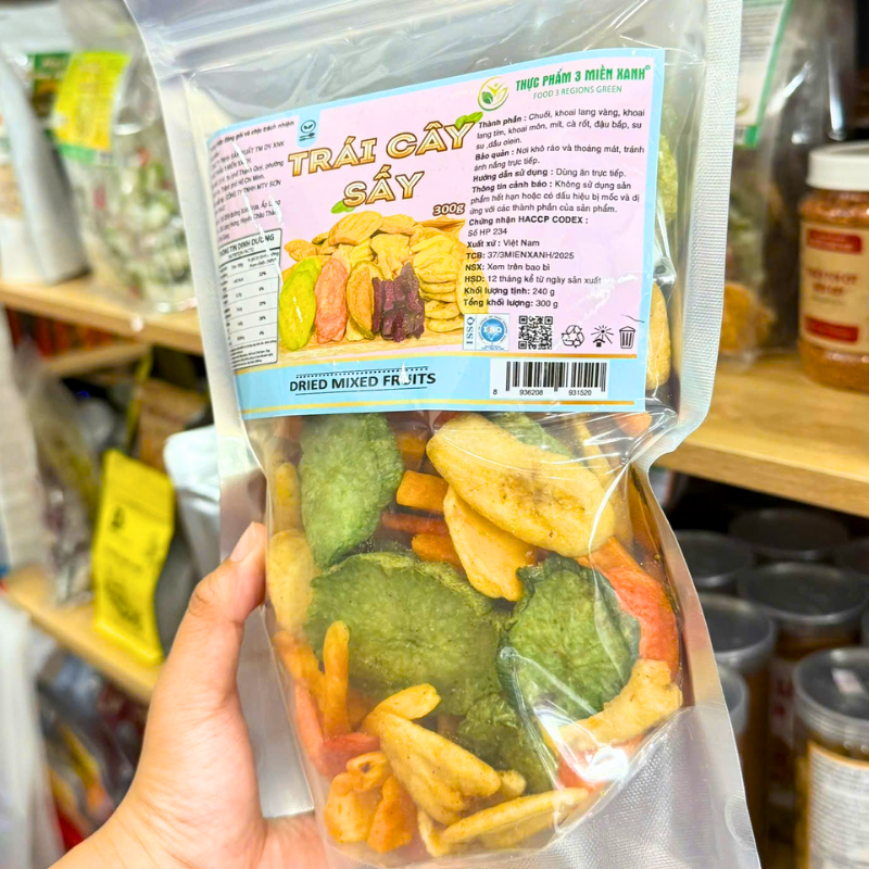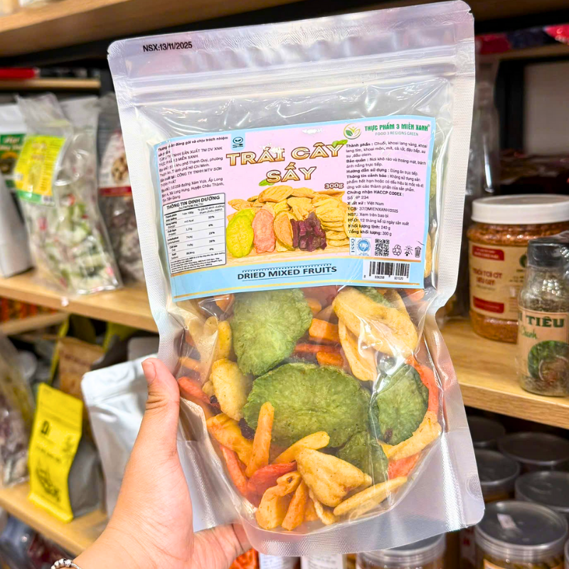 Bỏ sỉ trái Cây Thập Cẩm Sấy Giòn 300g – Túi Zip Bạc