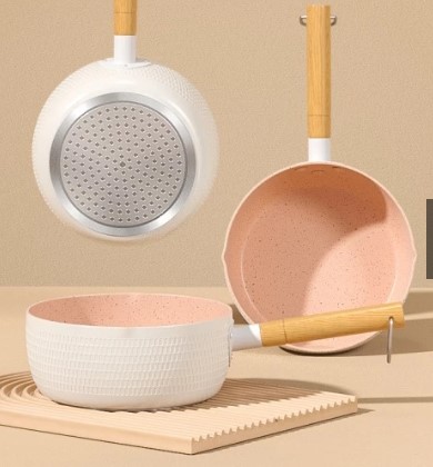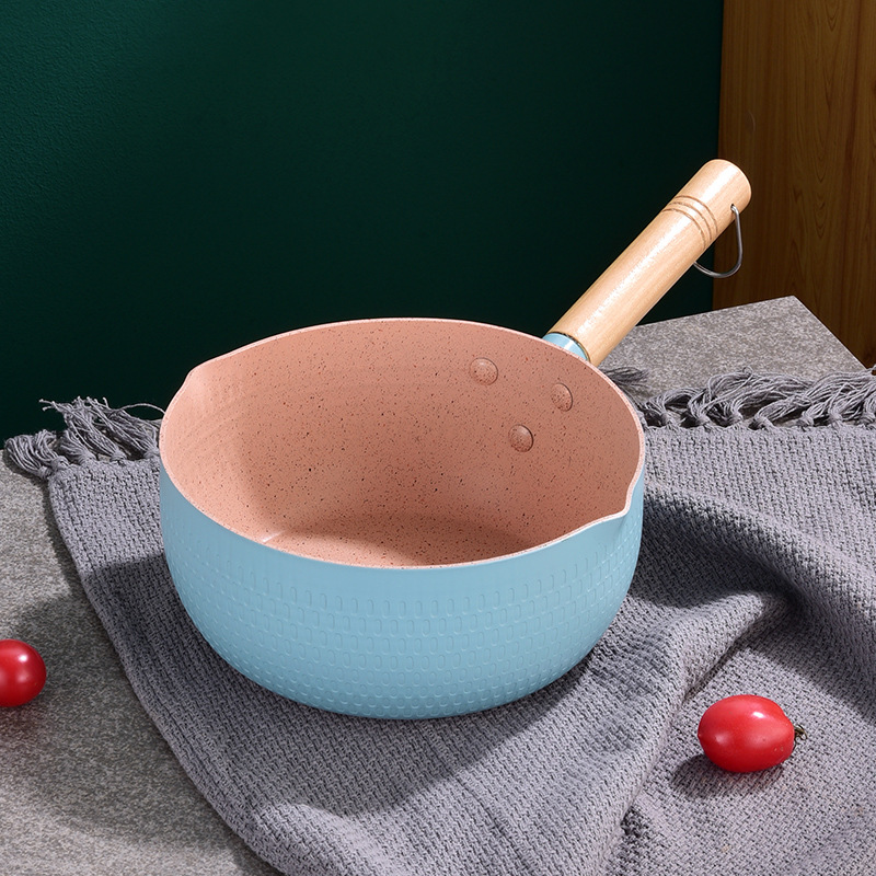 Chảo Chống Dính Tráng Men Cán Gỗ Nhiều Màu 18.5×7.5cm