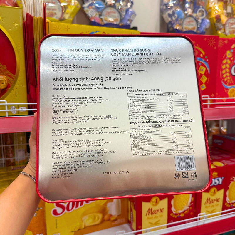 Chuyên sỉ bánh Quy Bơ Cosy Marie Vị Vani – Bánh Quy Sữa Cosy Hộp Thiếc 408g – (Kèm Túi)
