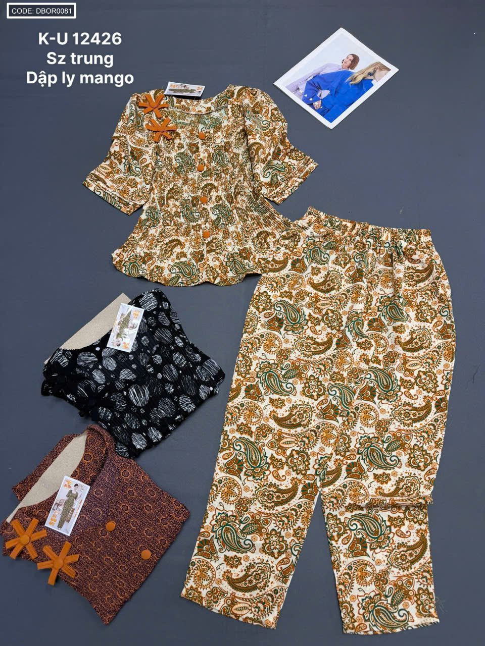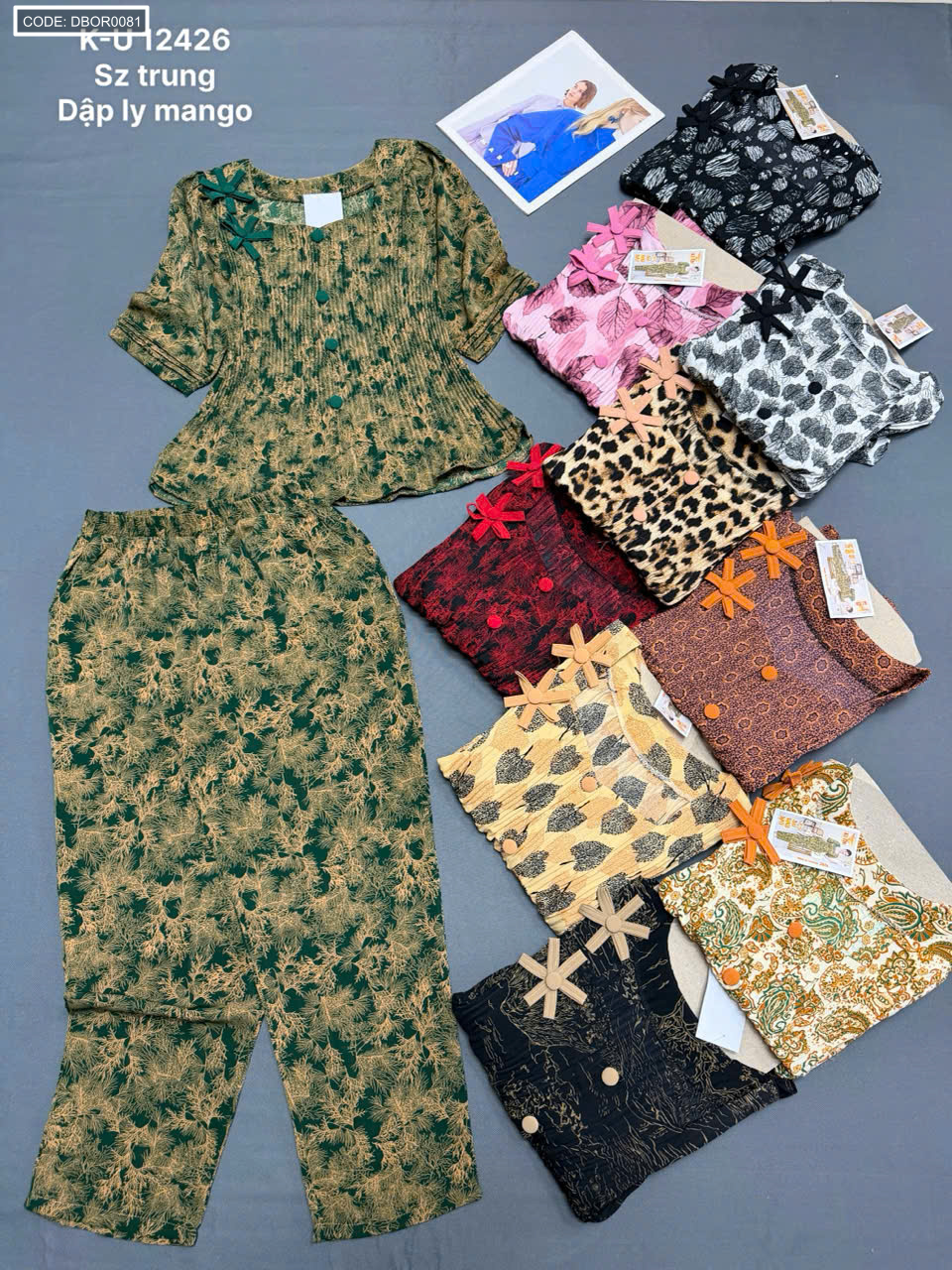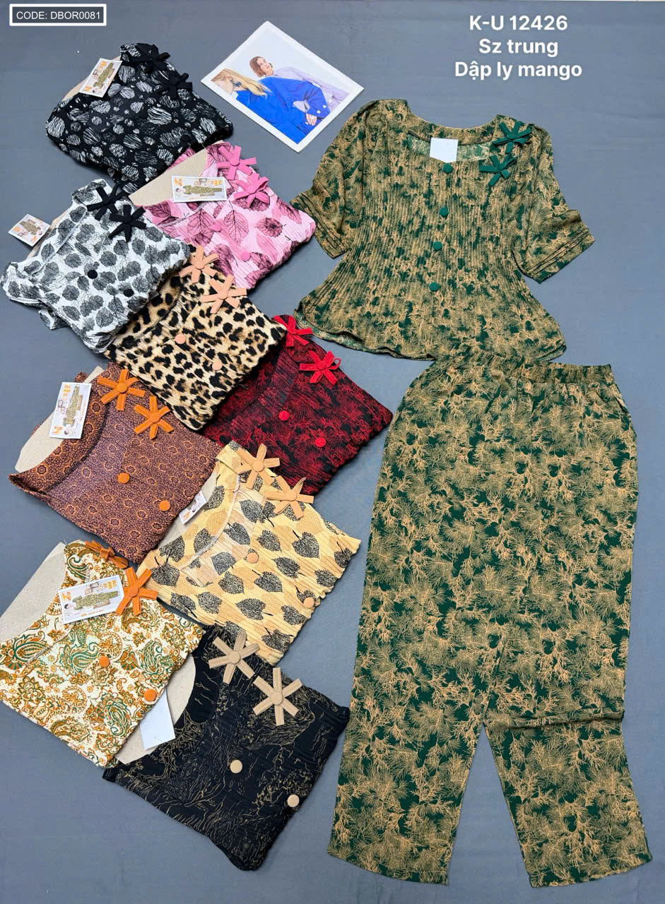 Chuyên sỉ đồ bộ nữ dập ly tay ngắn quần dài KU 12426