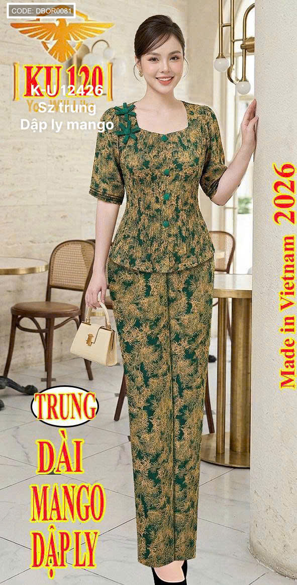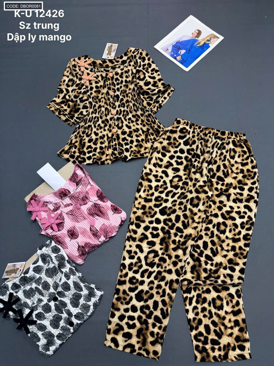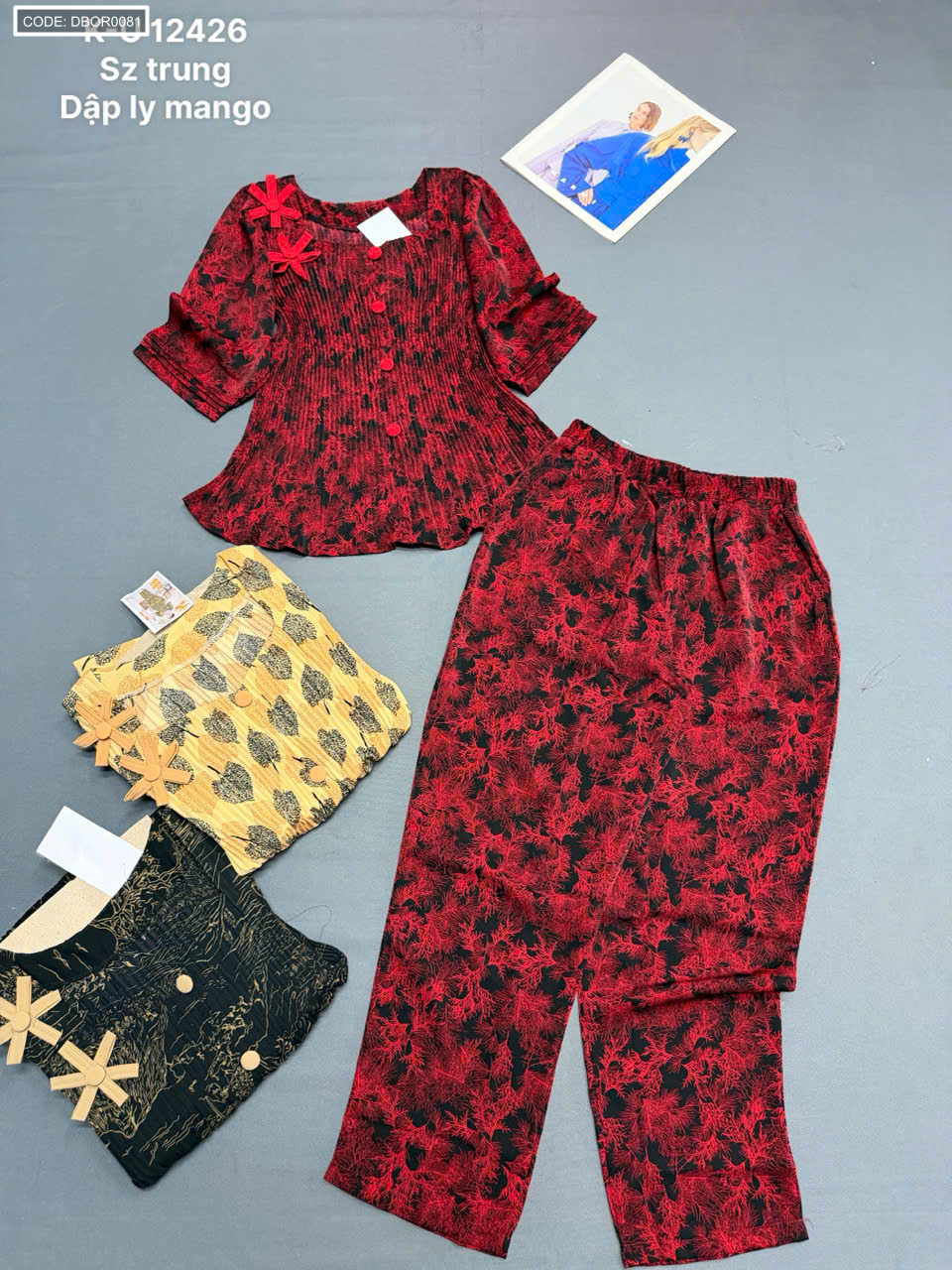 Chuyên sỉ đồ bộ nữ dập ly tay ngắn quần dài KU 12426
