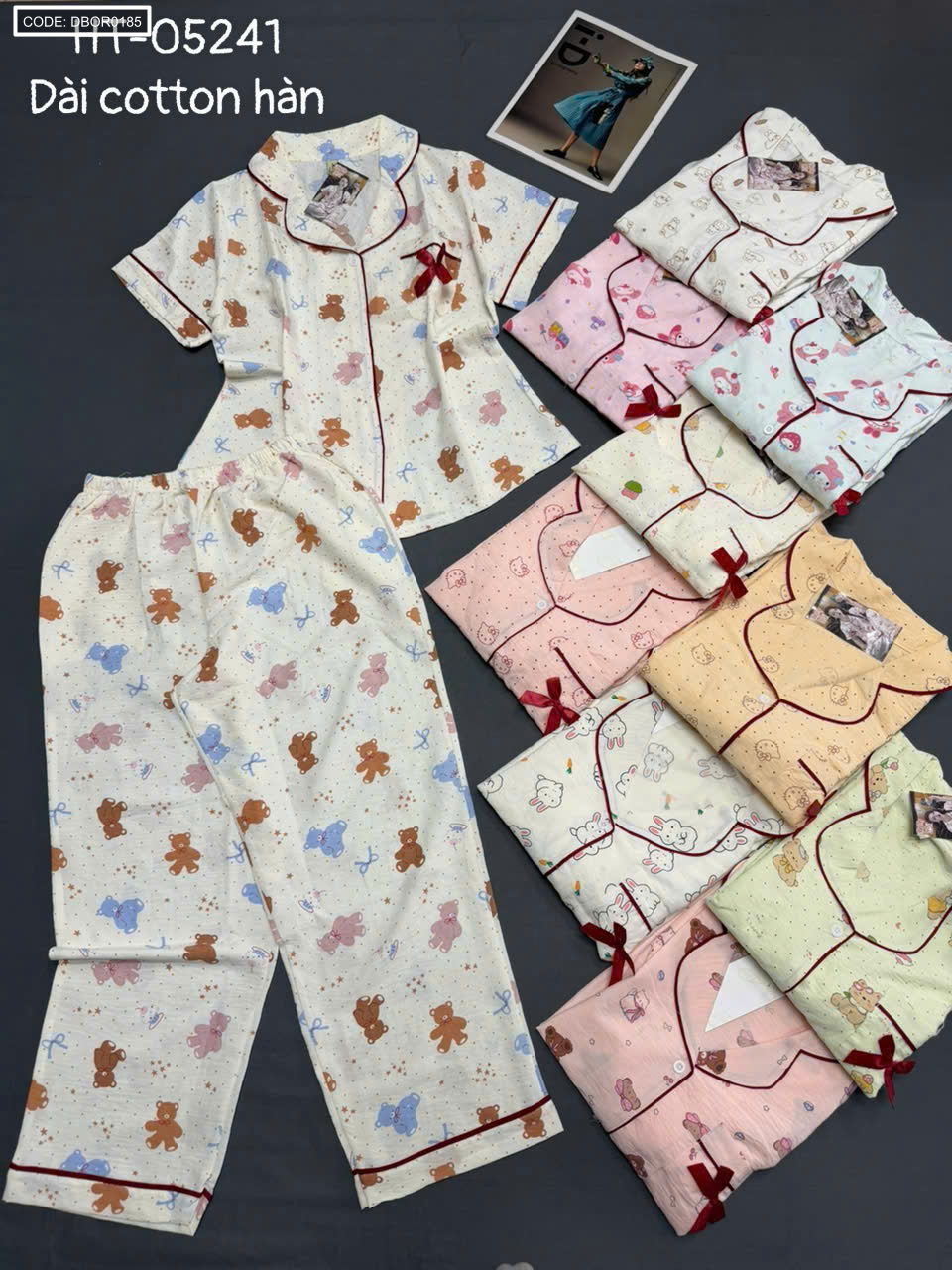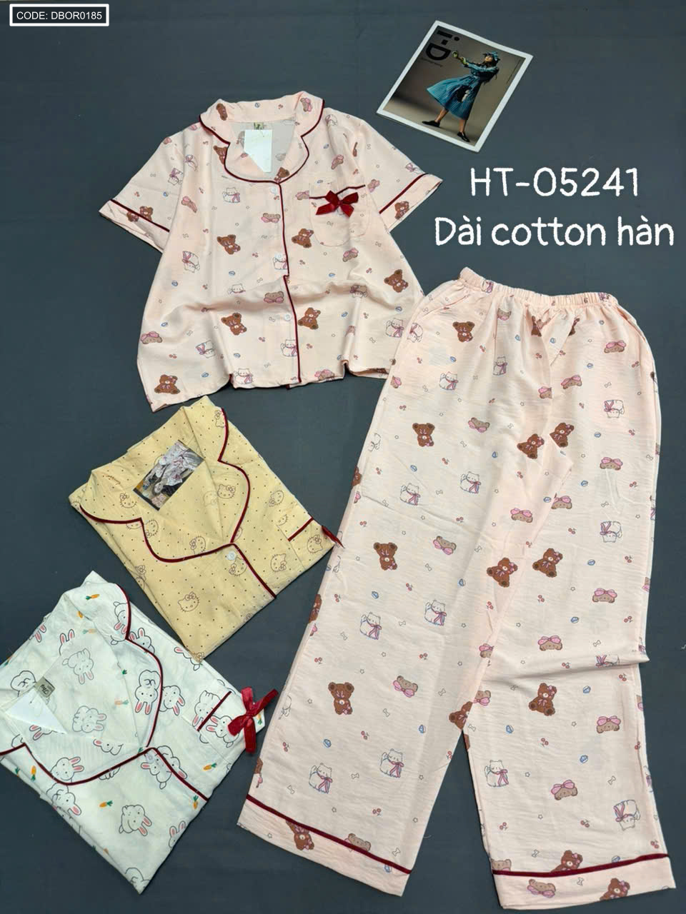 Chuyên sỉ đồ bộ nữ pijama tay ngắn quần dài HT-05241 chất cotton hàn