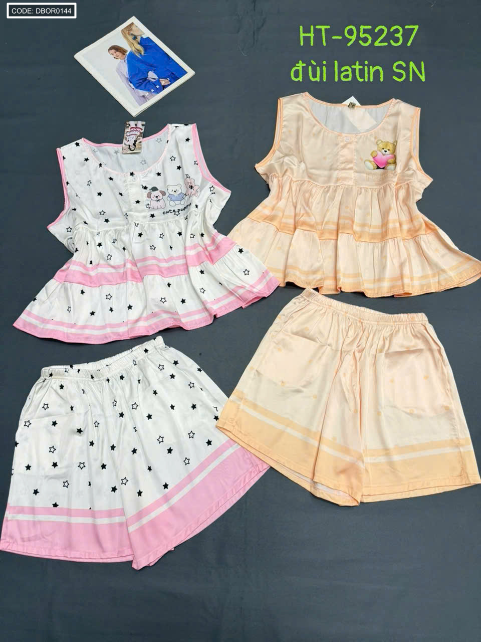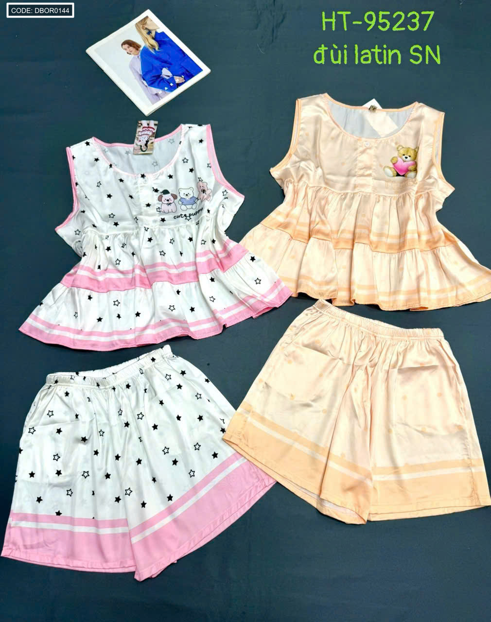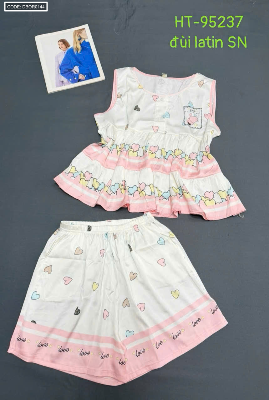 Chuyên sỉ đồ bộ nữ sát nách quần đùi chất latin HT-95237