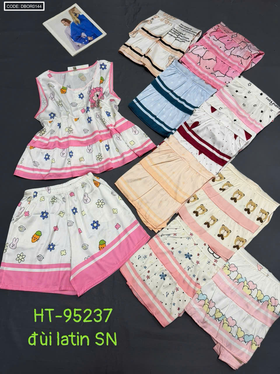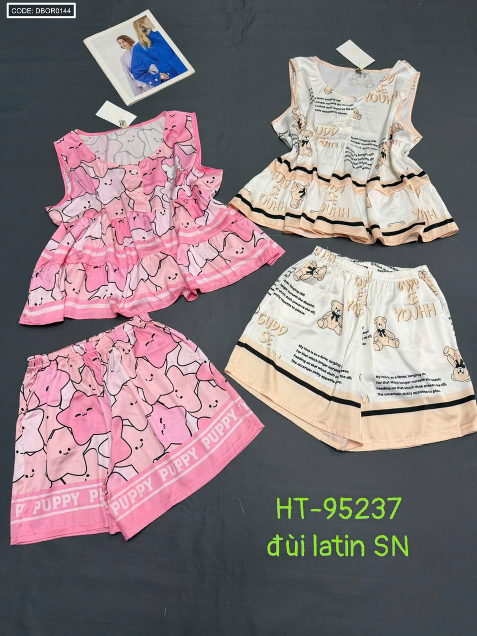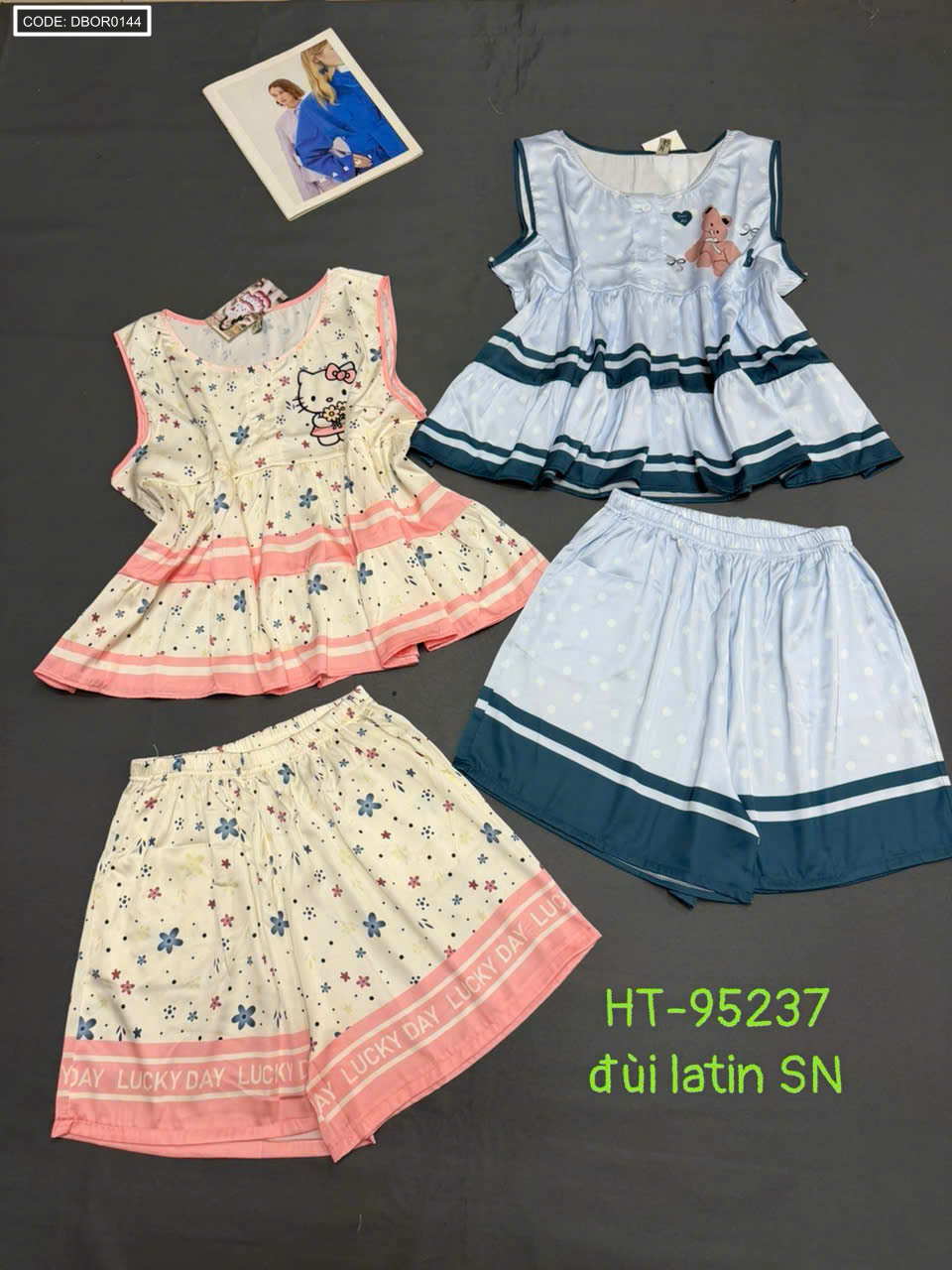 Chuyên sỉ đồ bộ nữ sát nách quần đùi chất latin HT-95237
