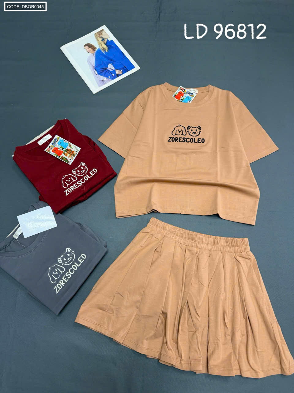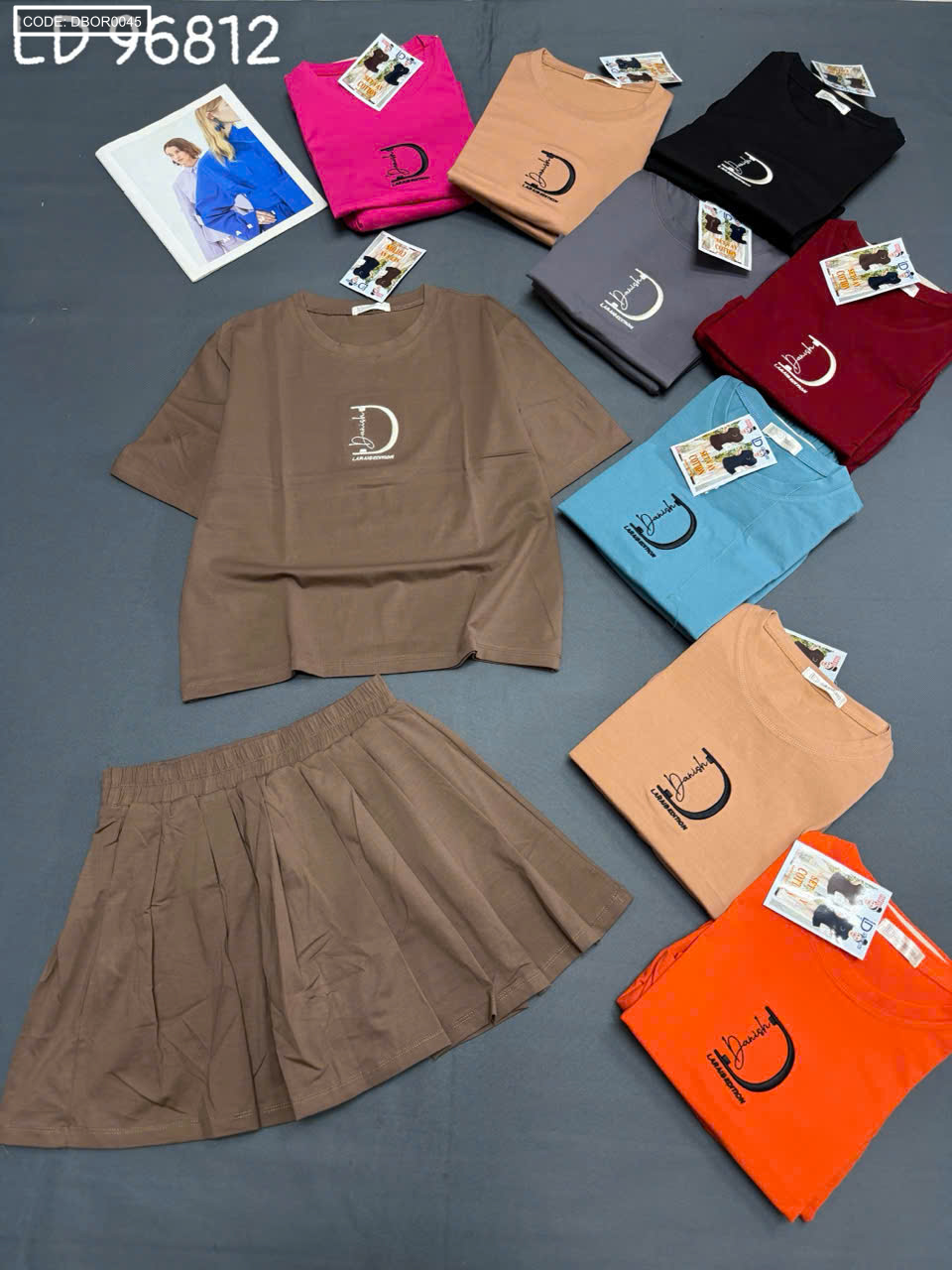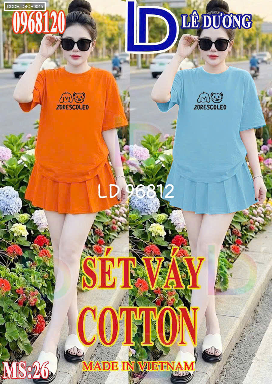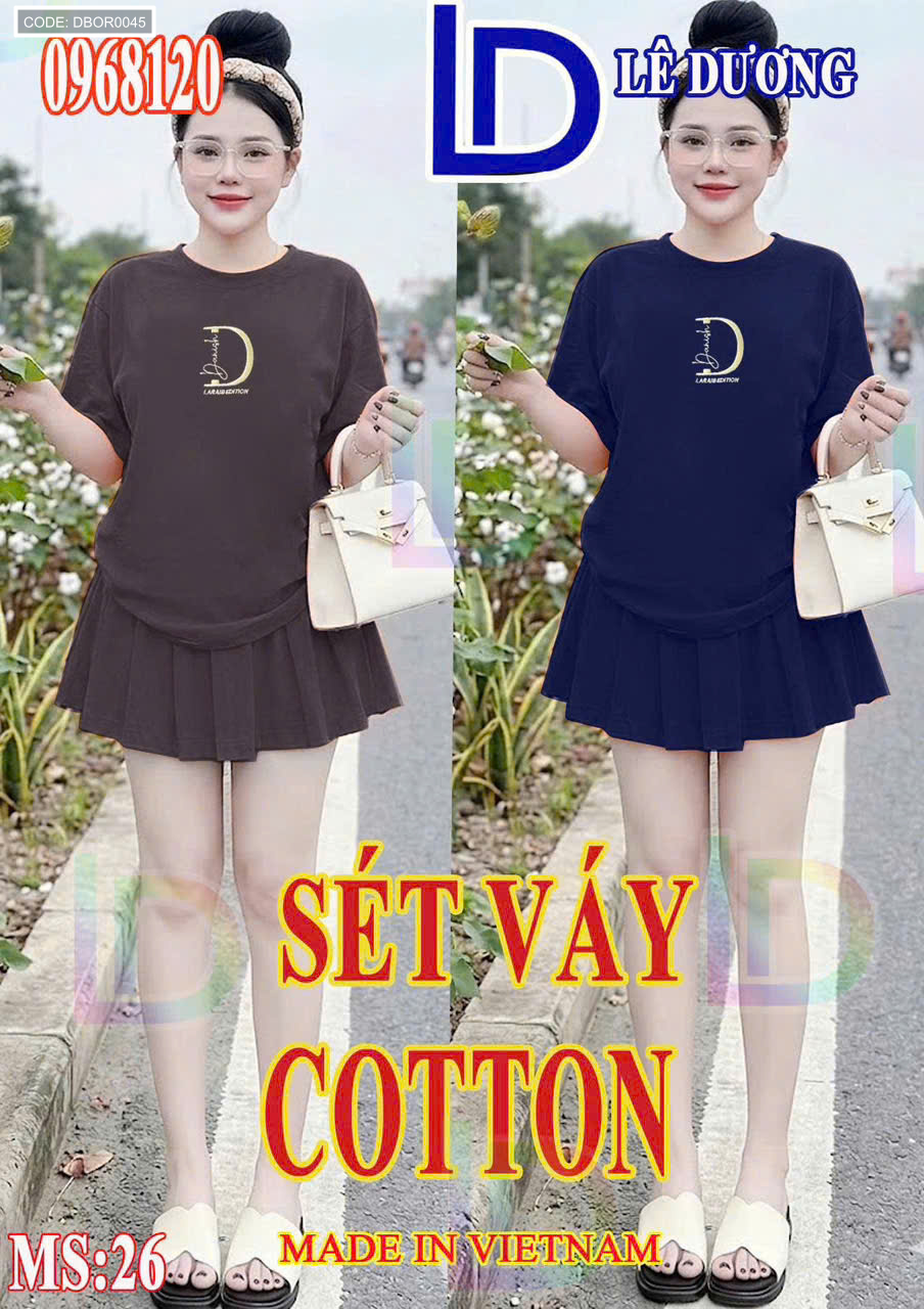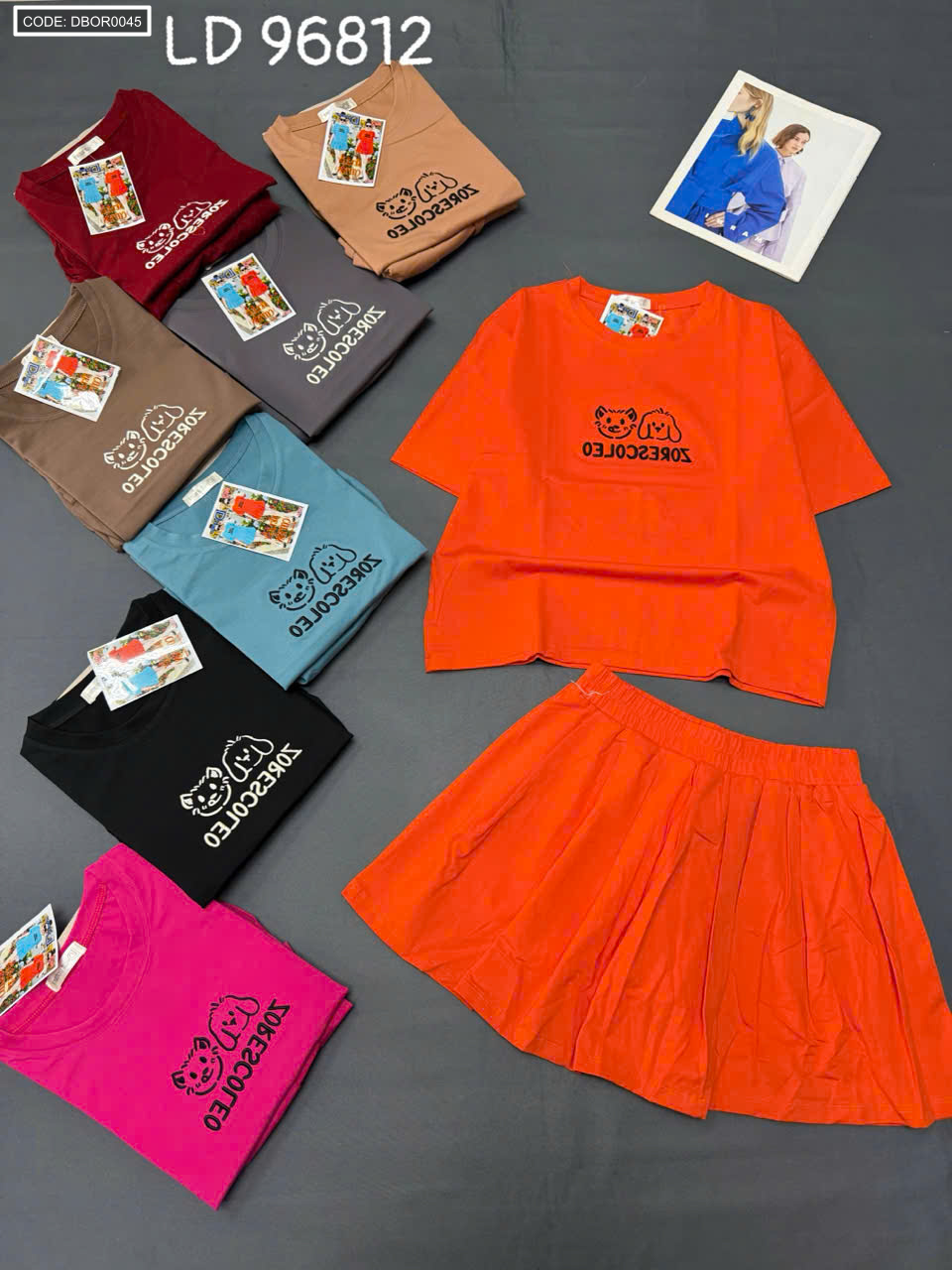 Chuyên sỉ đồ bộ nữ tay ngắn quần váy LD 96812 thun cotton 4 chiều