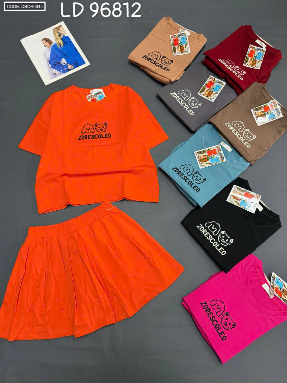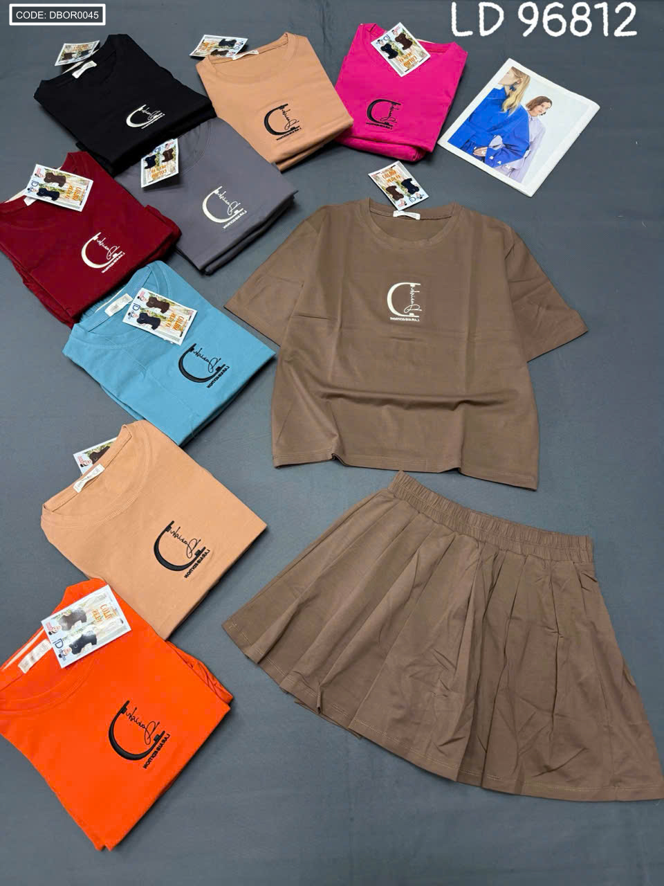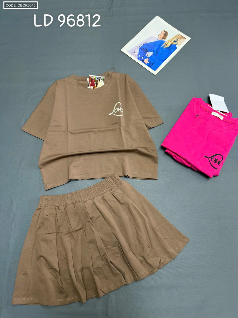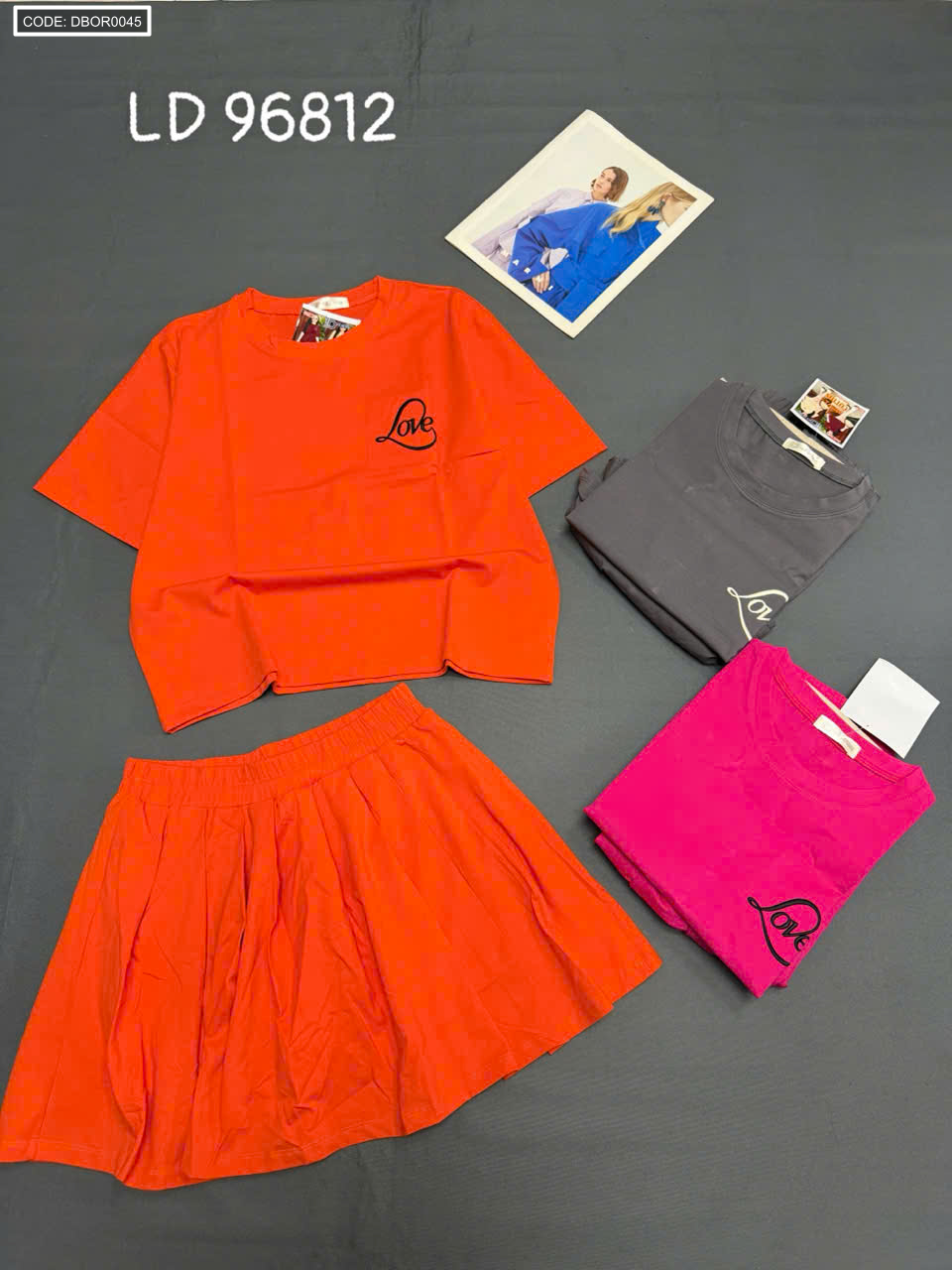 Chuyên sỉ đồ bộ nữ tay ngắn quần váy LD 96812 thun cotton 4 chiều