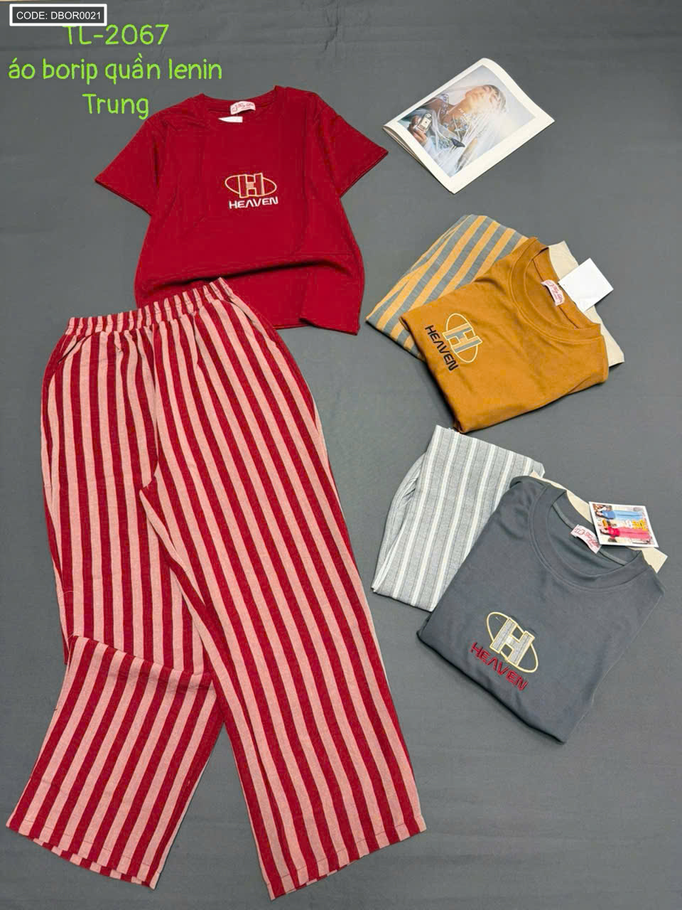 TL 2067 áo borip quần lenin Trung freesize(40-55kg)