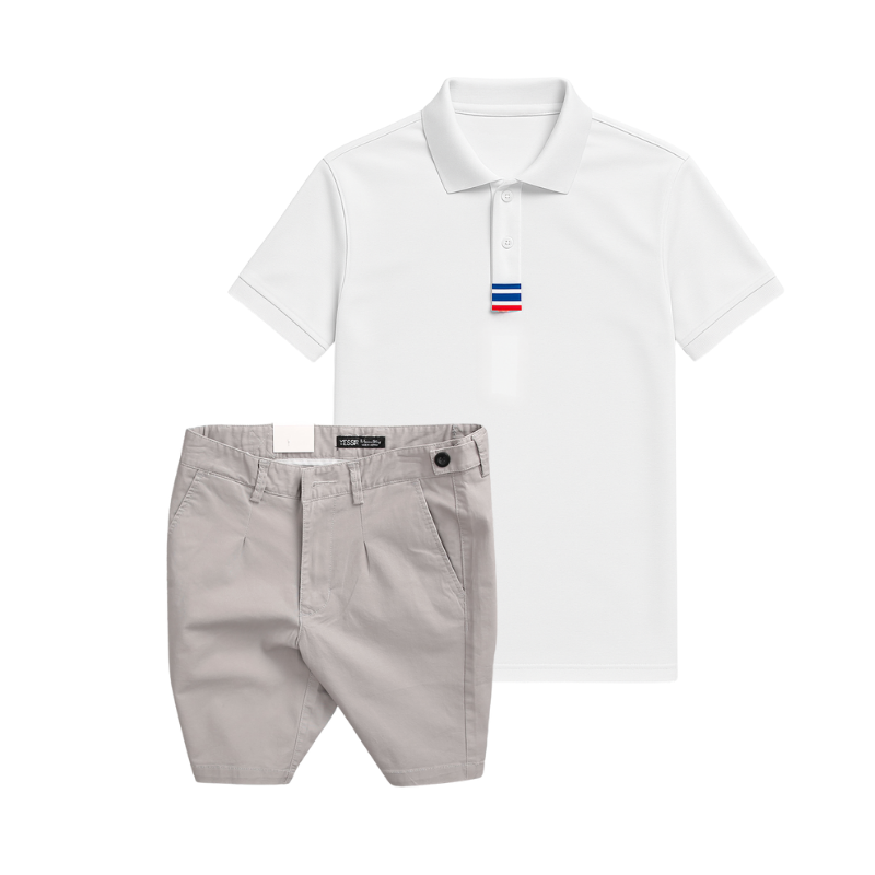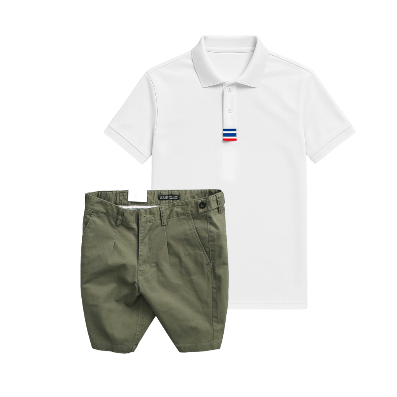 Chuyên sỉ set Bộ Nam – Áo Thun Nam Polo Cổ Bẻ Thêu 3 Sọc Đỏ Xanh Và Quần Short Kaki Co Giãn Phối Nút Cao Cấp (Có Size 36)