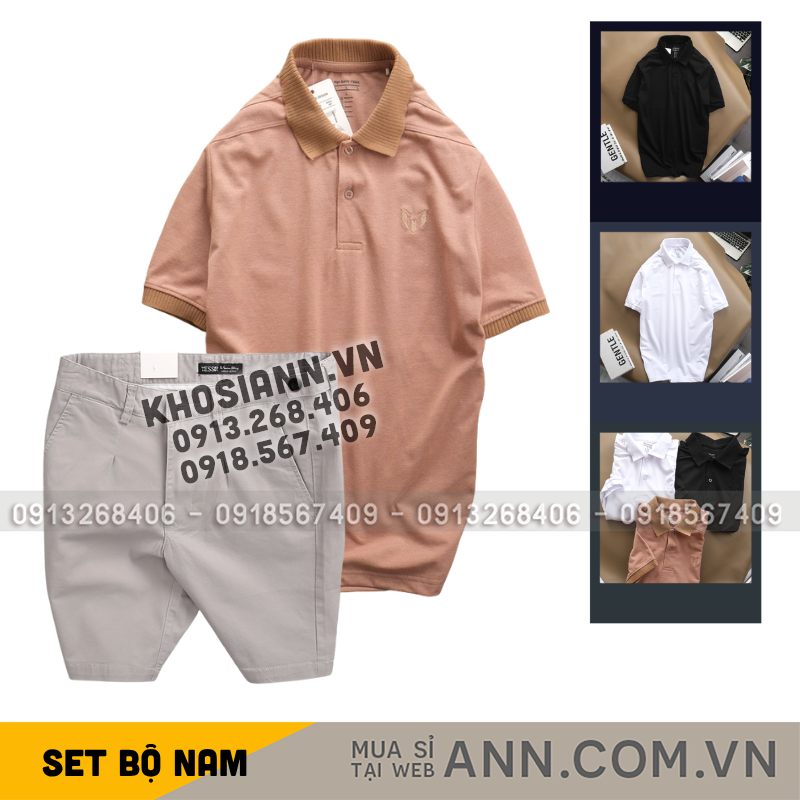 Chuyên sỉ set Bộ Nam – Áo Thun Nam Polo Cổ Bẻ Thêu Logo Trước Ngực Và Quần Short Kaki Co Giãn Phối Nút Cao Cấp (Có Size 36)