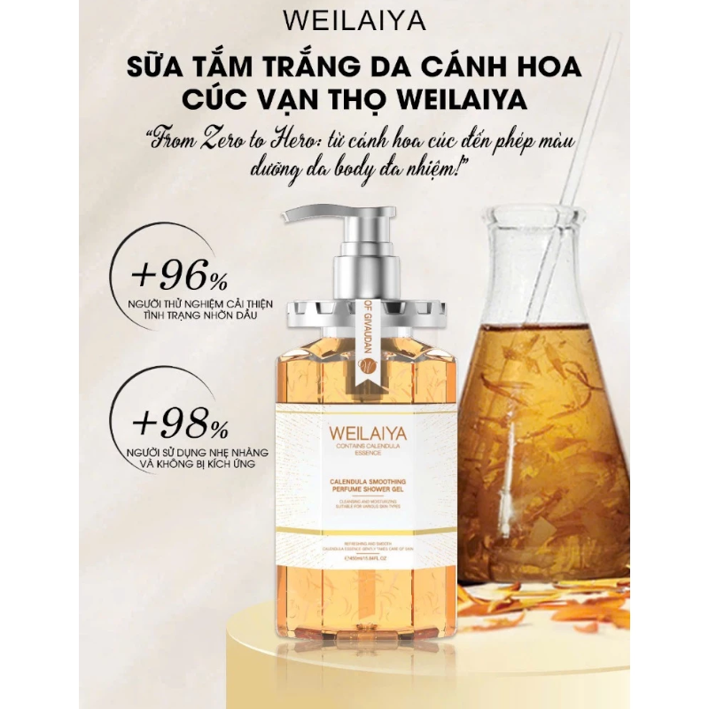 Chuyên sỉ sữa Tắm Trắng Da Toàn Thân Weilaiya Cánh Hoa Cúc Vạn Thọ 450ml