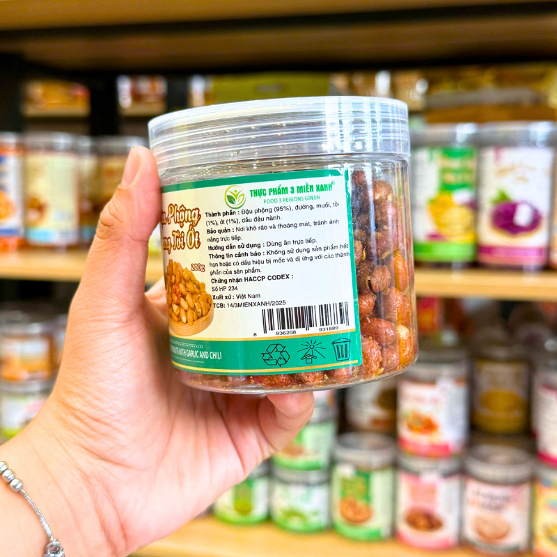 Đậu Phộng Rang Tỏi Ớt Mini 200g – Hộp Pet