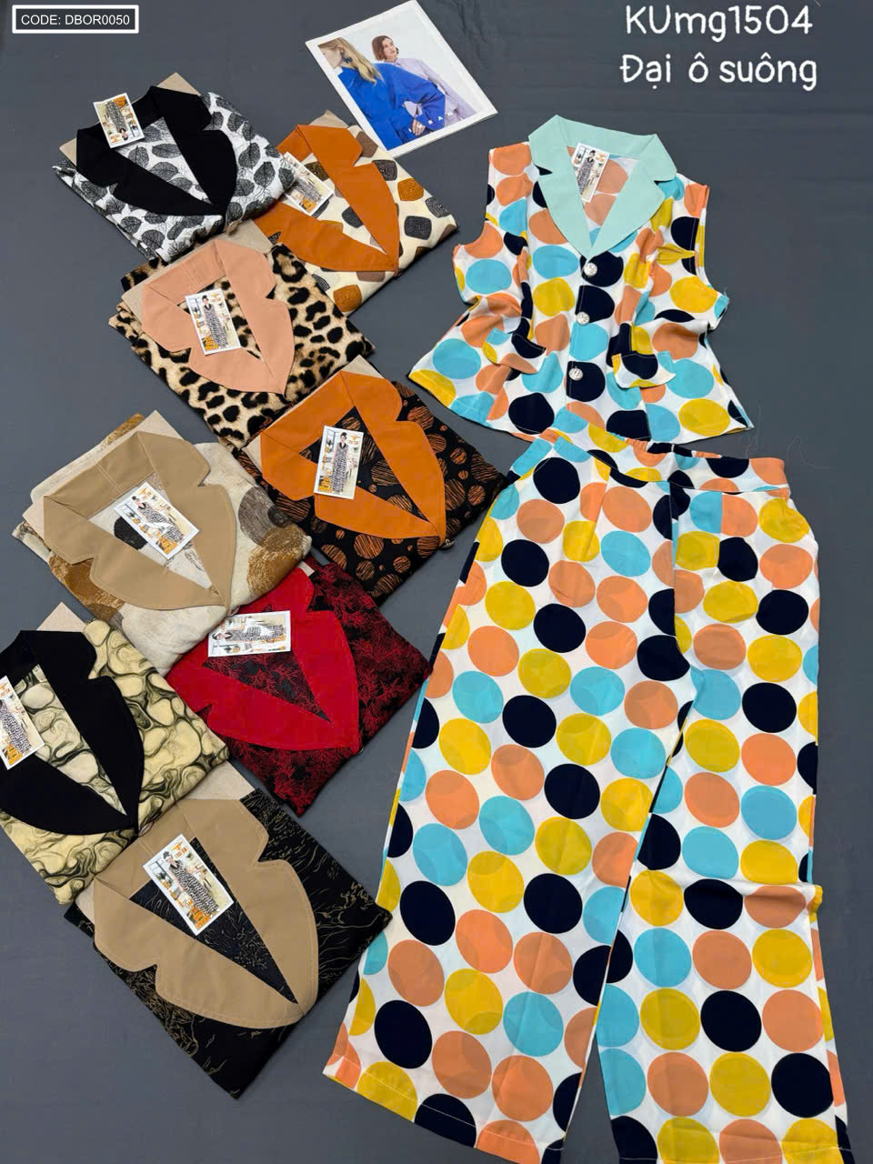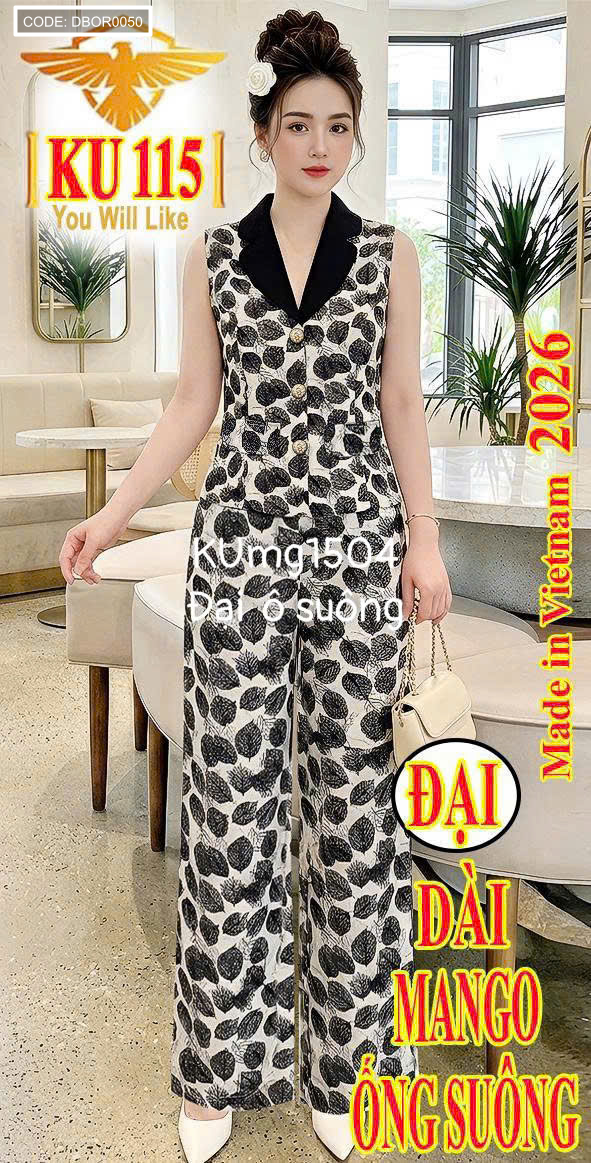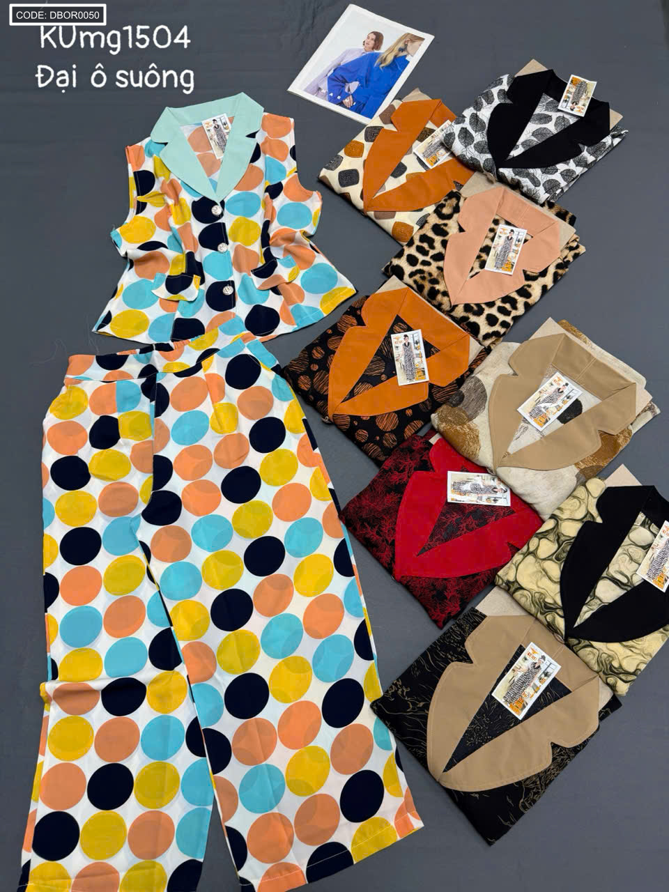 Đồ bộ nữ áo sát nách cổ vest quần ống suông KUmg1504