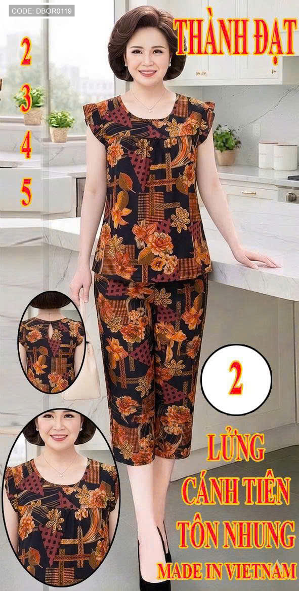 Đồ bộ nữ áo tay cánh tiên quần lửng tole nhung Thành Đạt ms2 – 2345