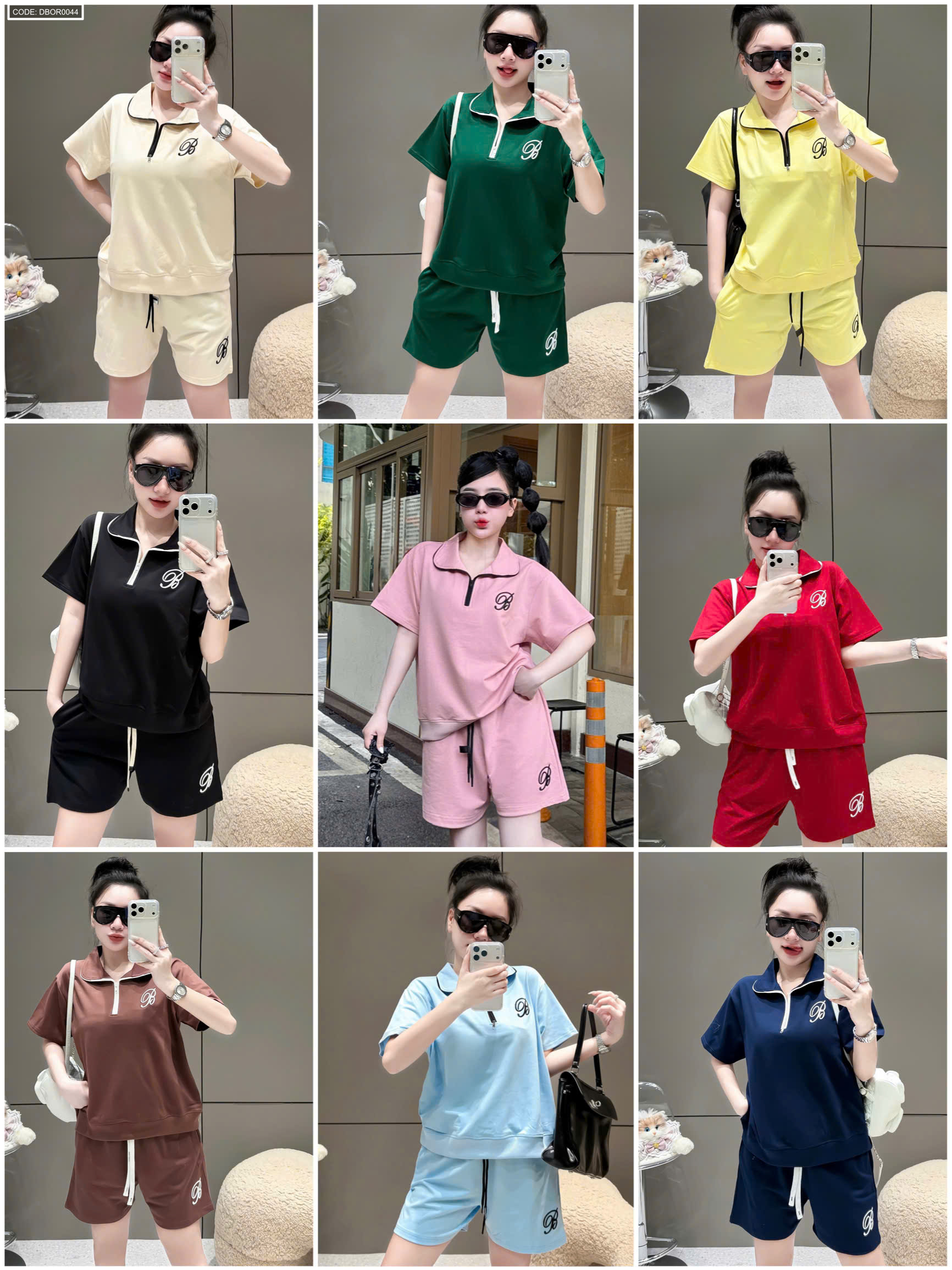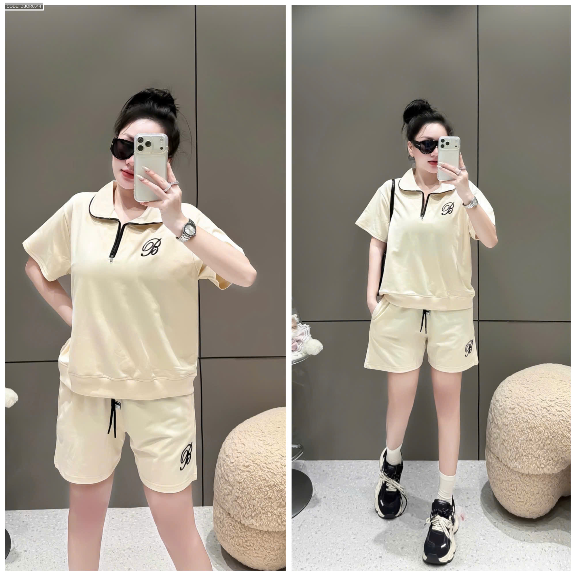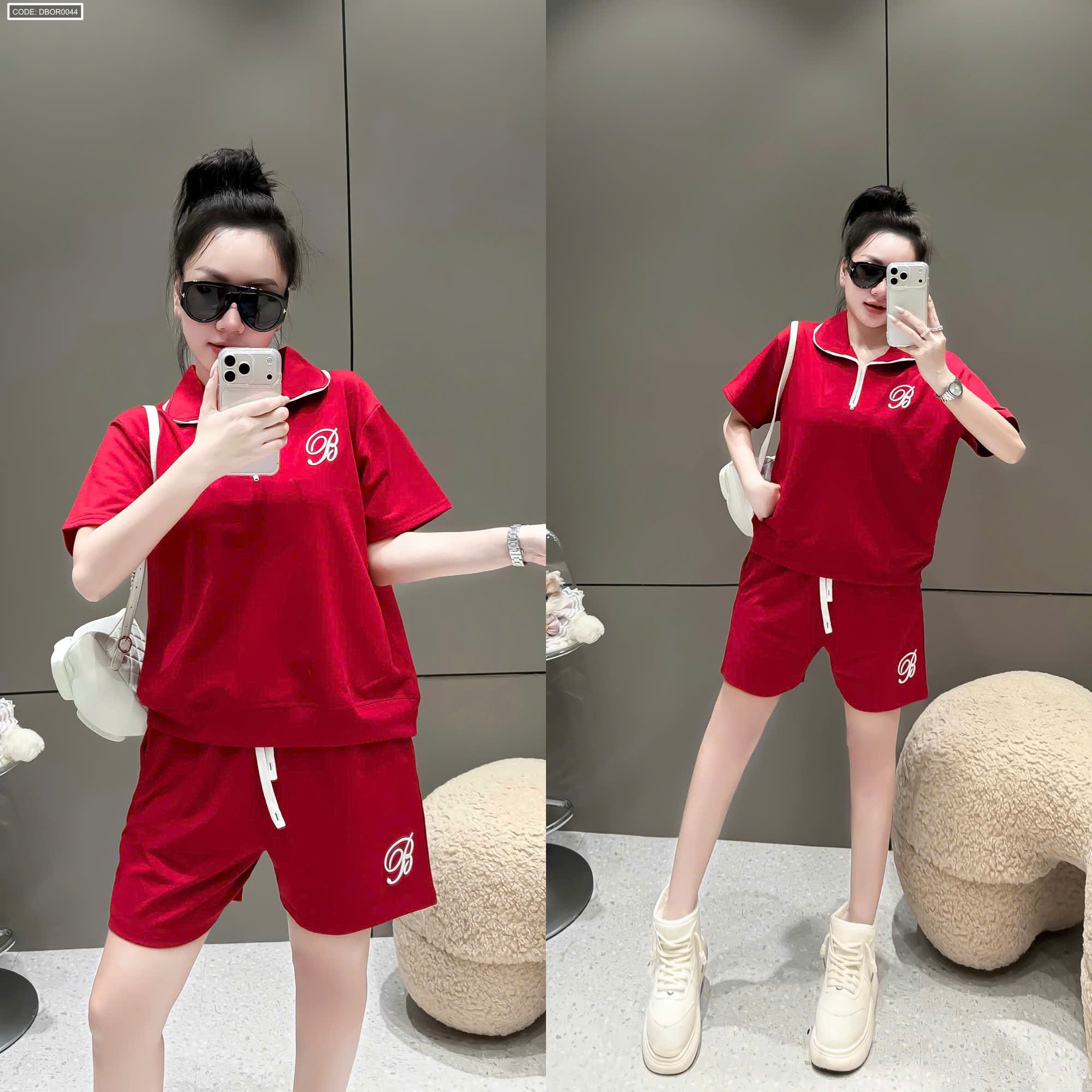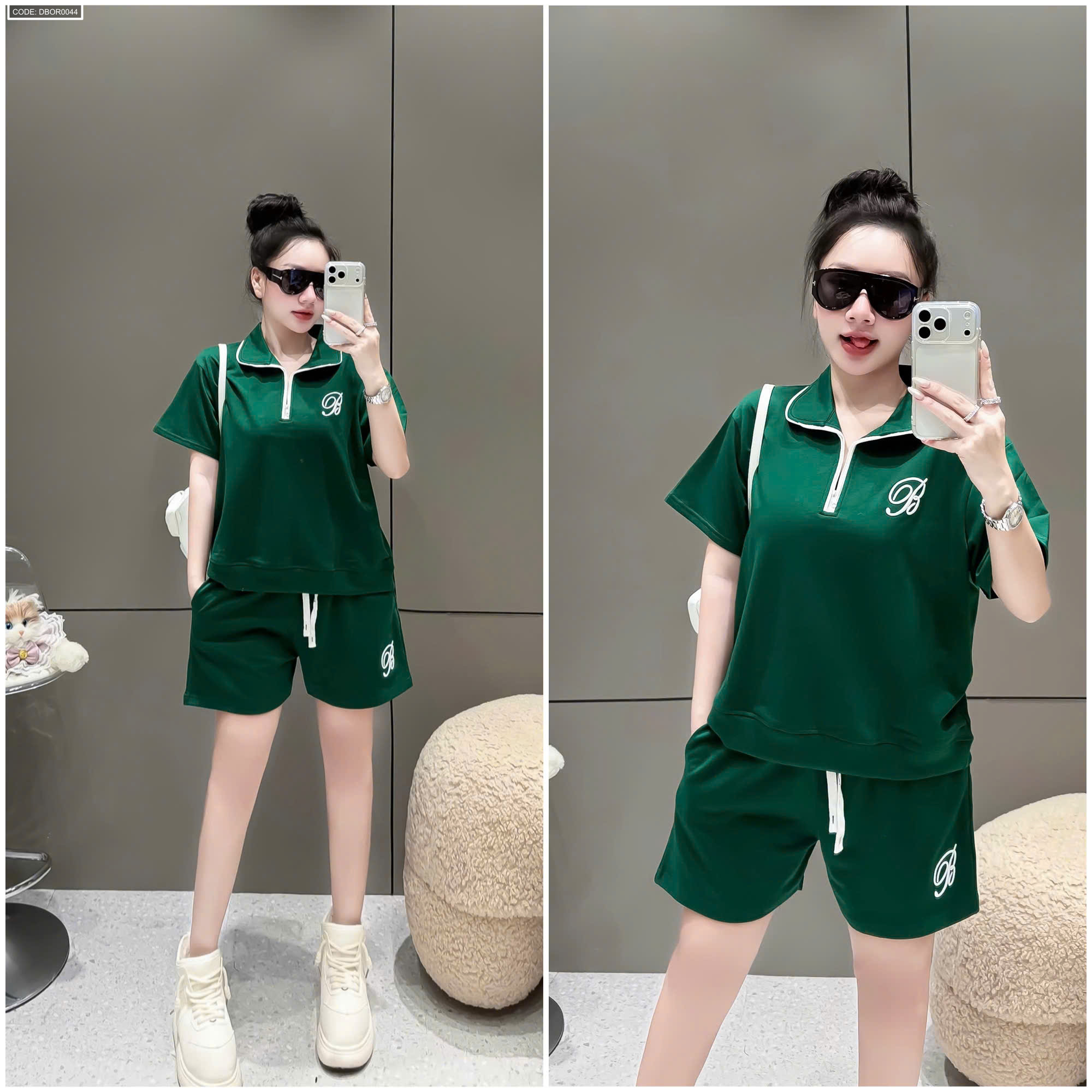 Đồ bộ nữ cổ bẻ quần đùi tay ngắn thun da cá