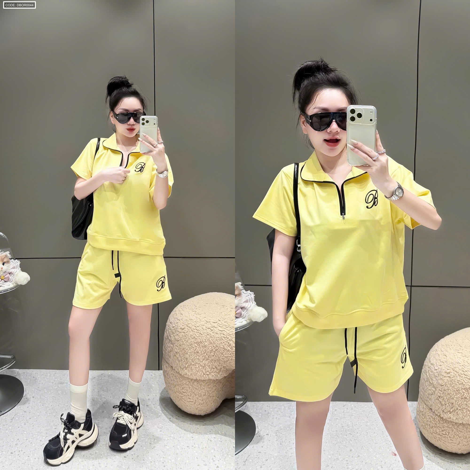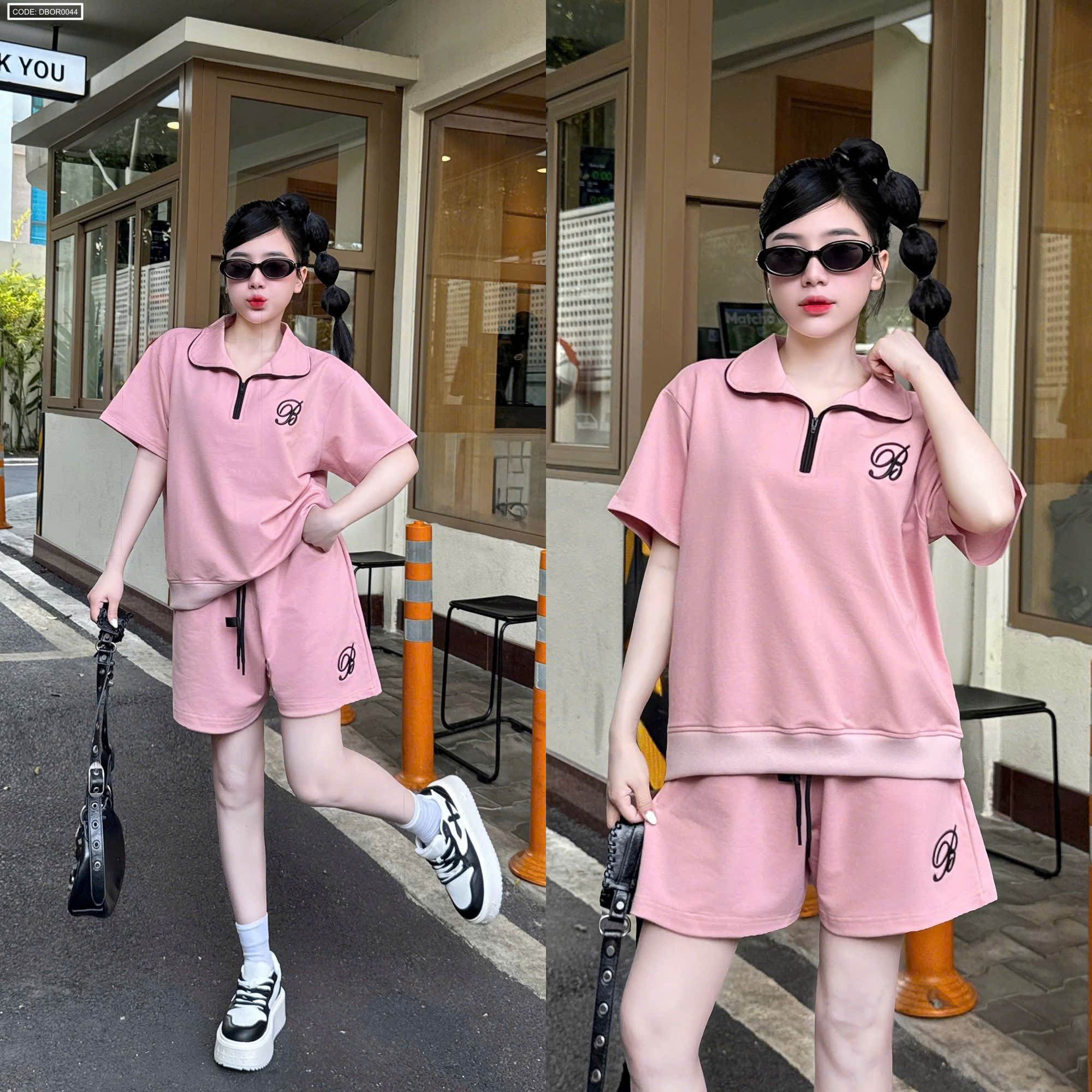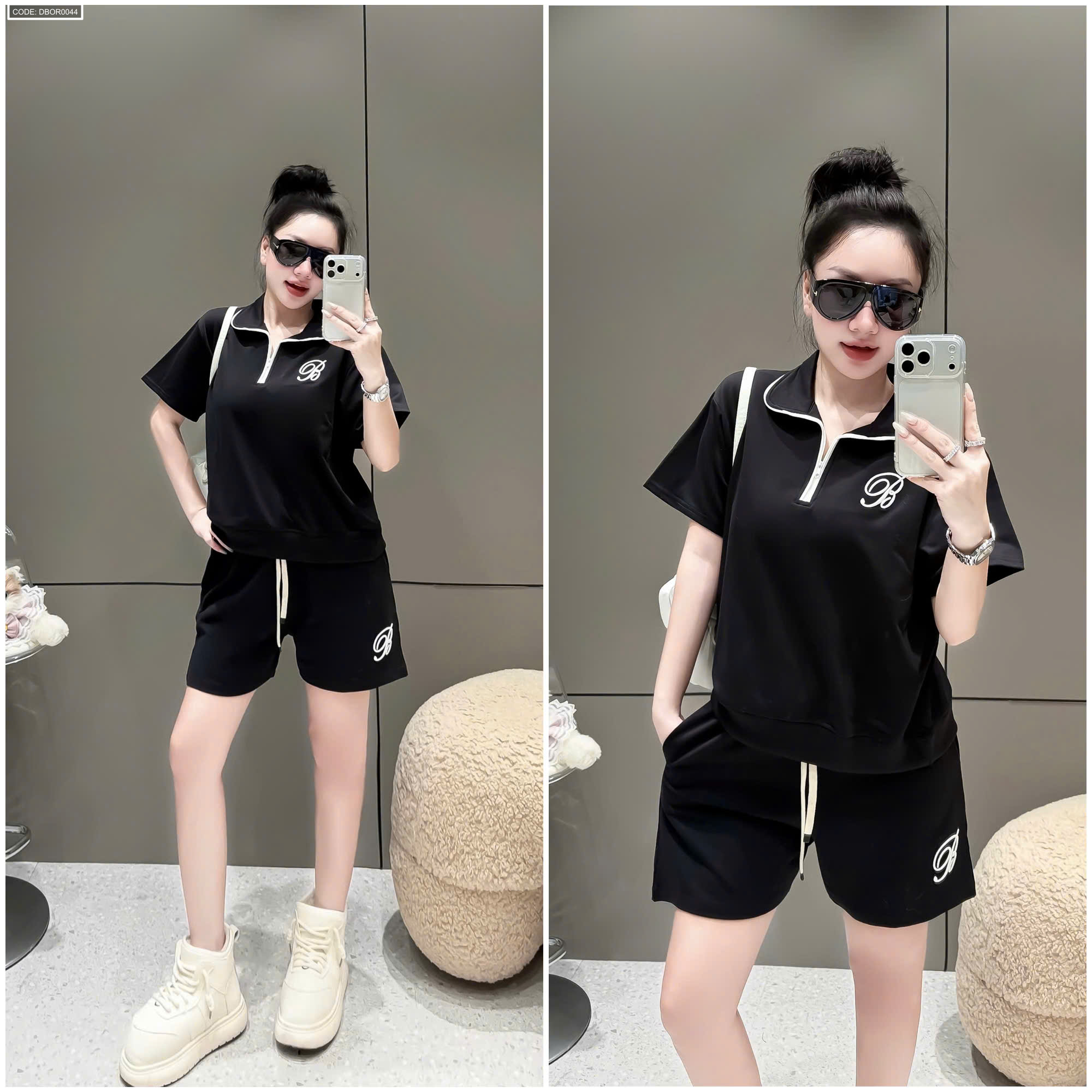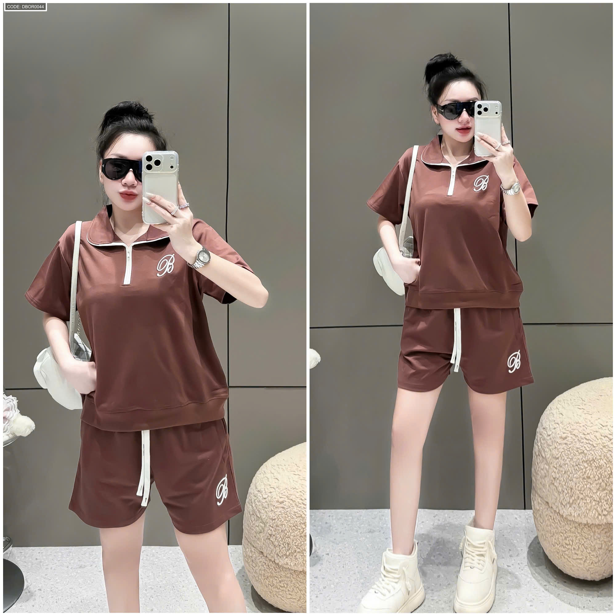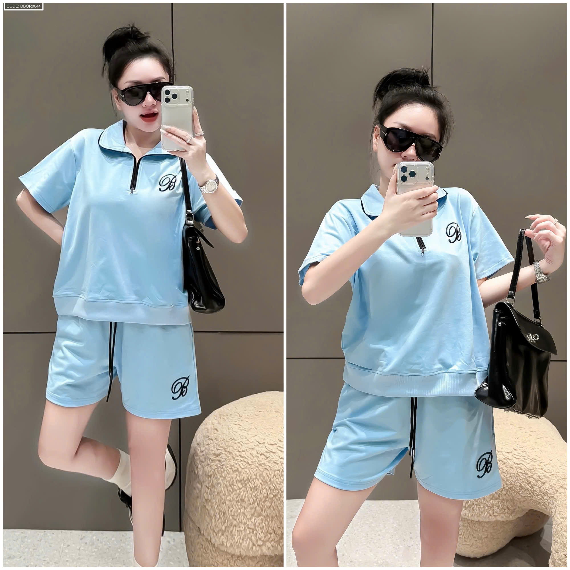 Đồ bộ nữ cổ bẻ quần đùi tay ngắn thun da cá