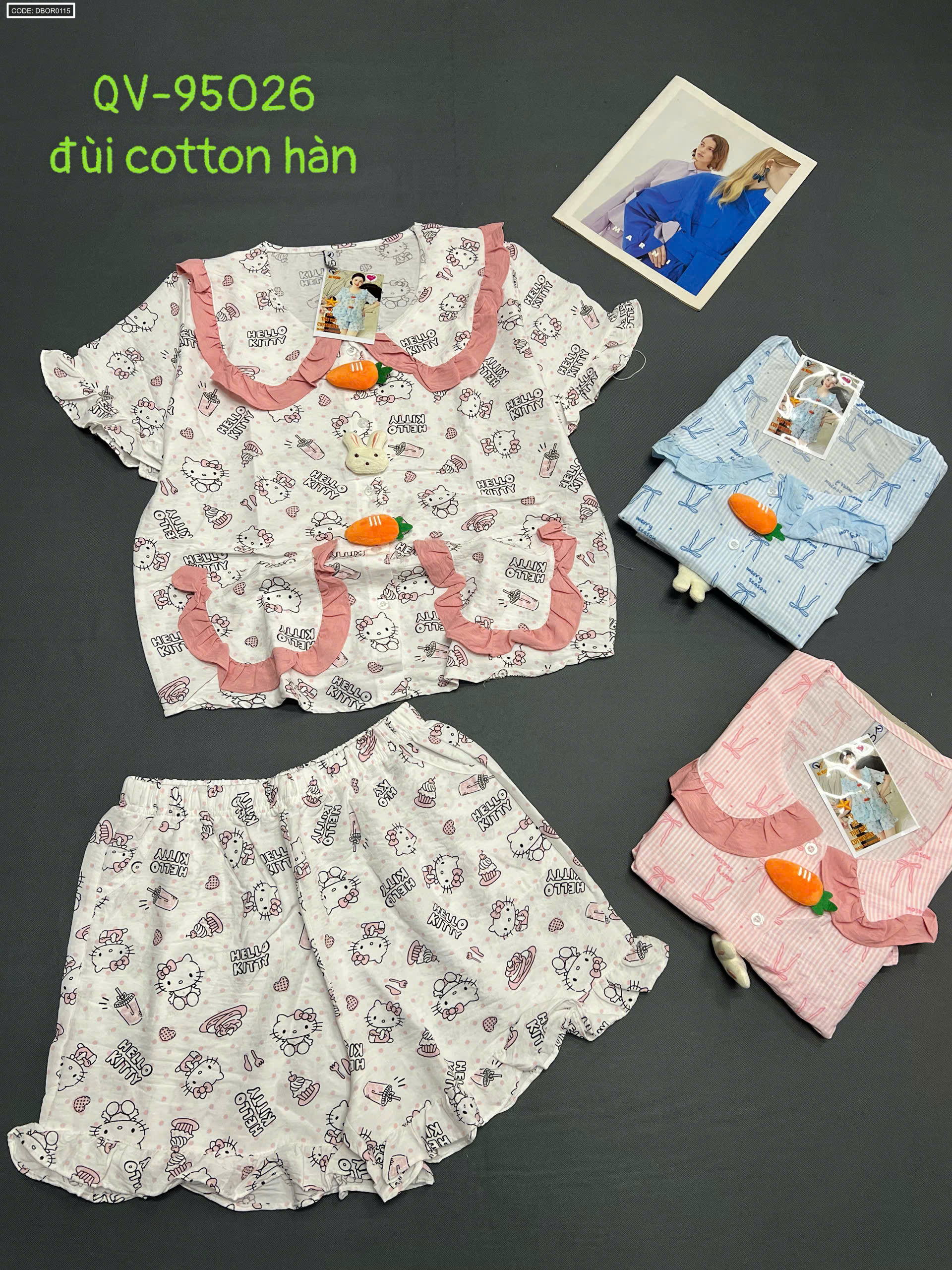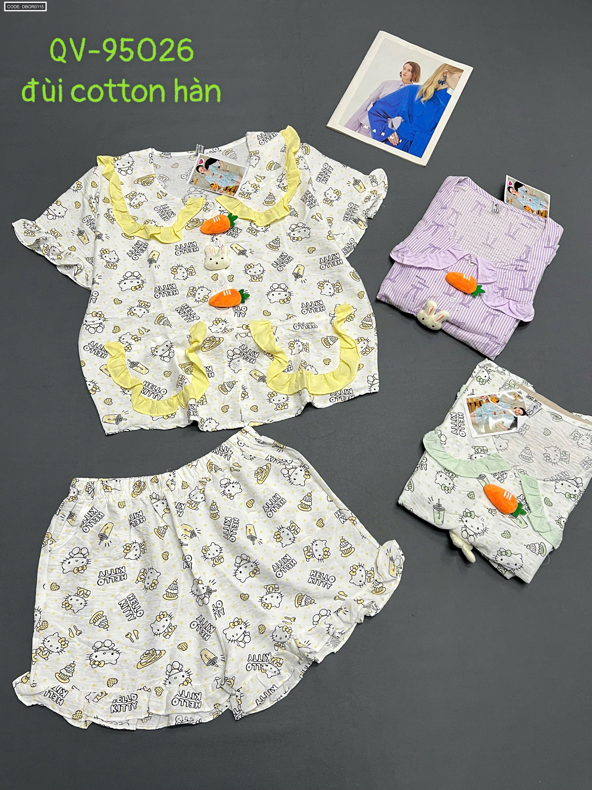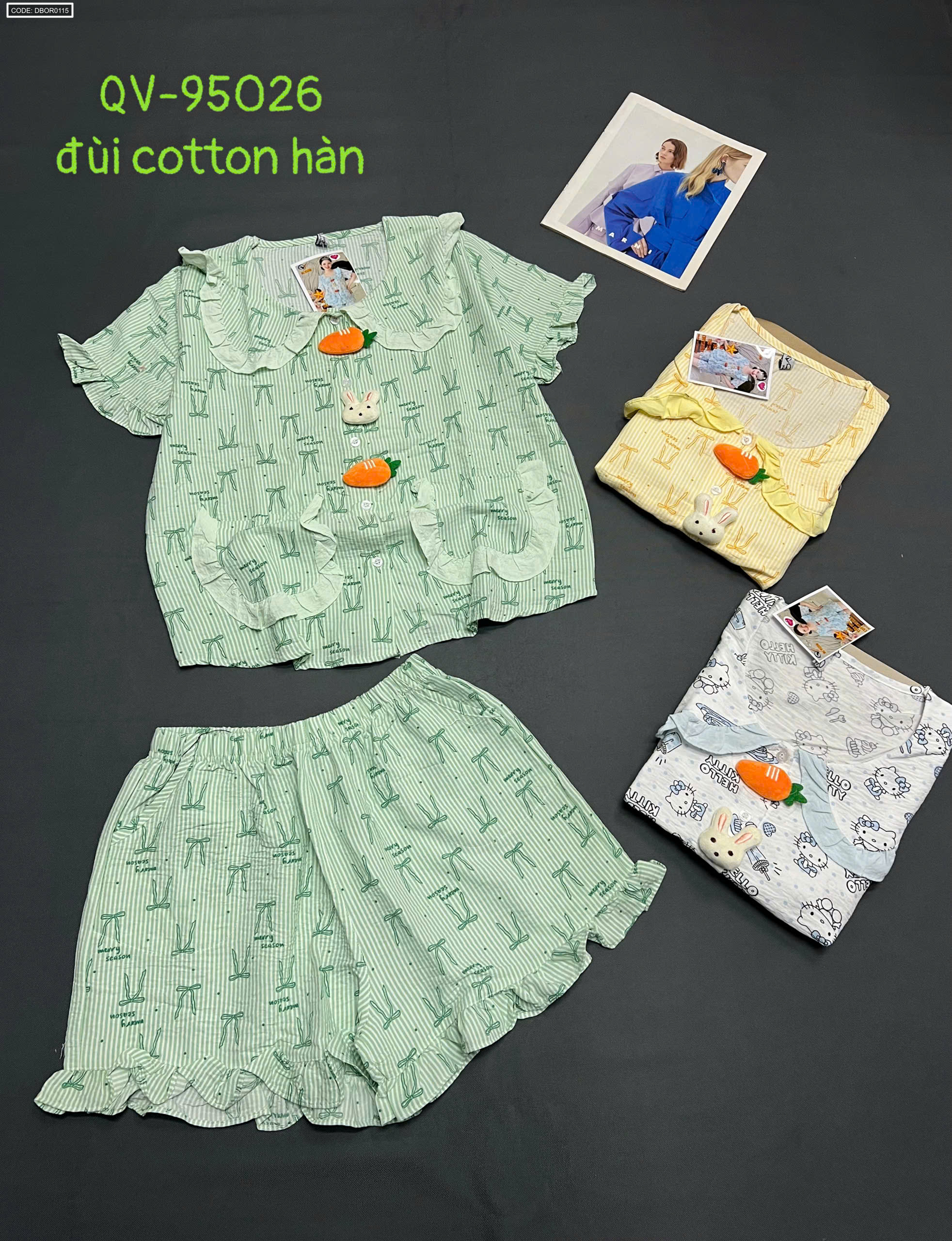 Đồ bộ nữ cổ sen quần đùi vải cotton hàn không giãn QV-95026