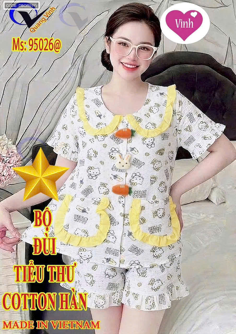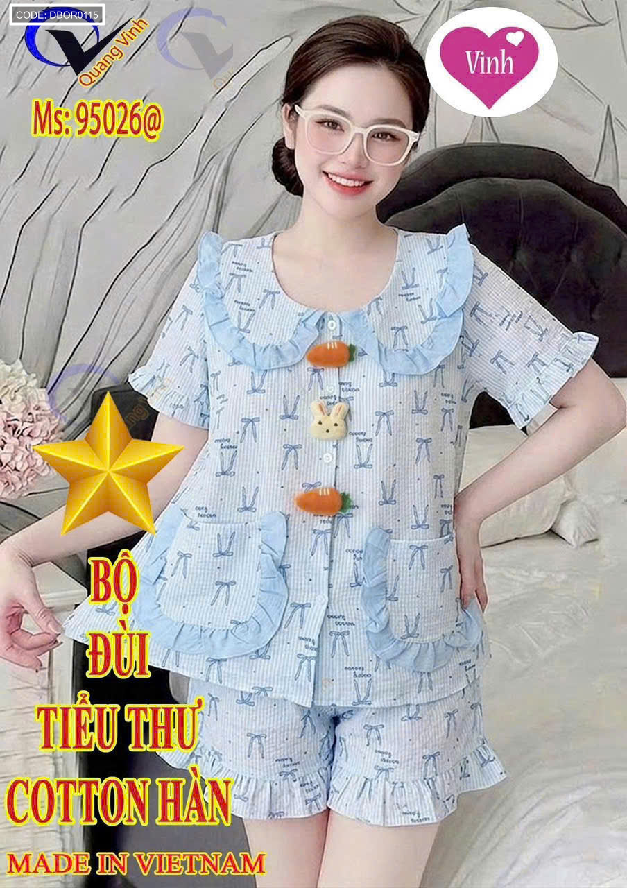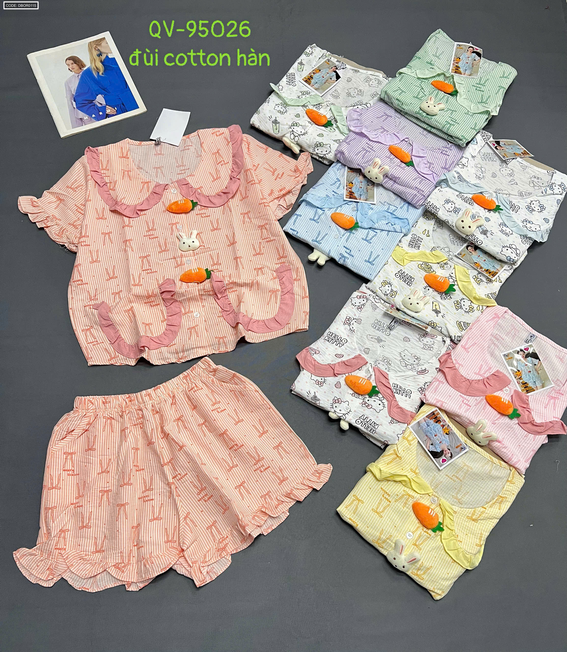 Đồ bộ nữ cổ sen quần đùi vải cotton hàn không giãn QV-95026