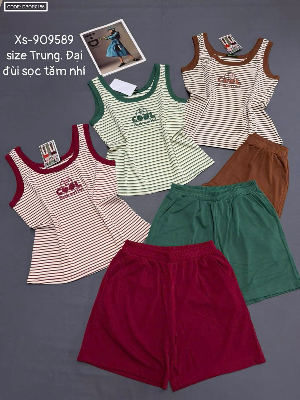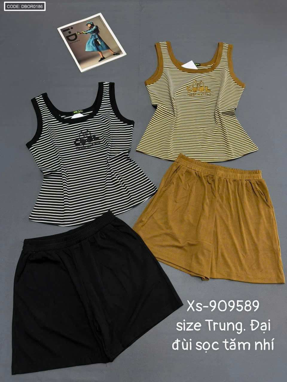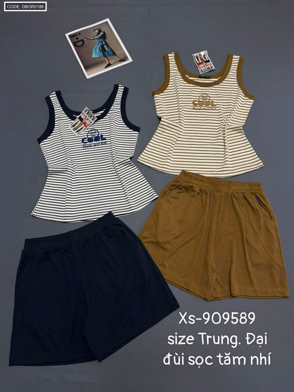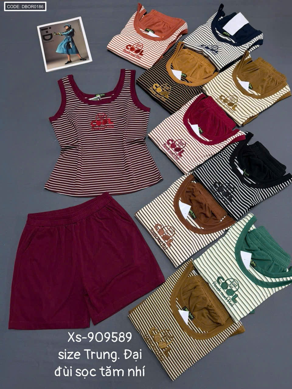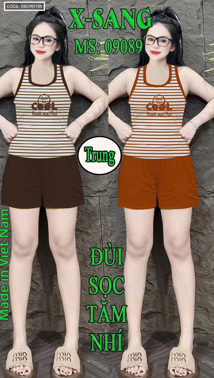 Đồ bộ nữ quần đùi sọc tăm nhí áo sát nách Xs-909589