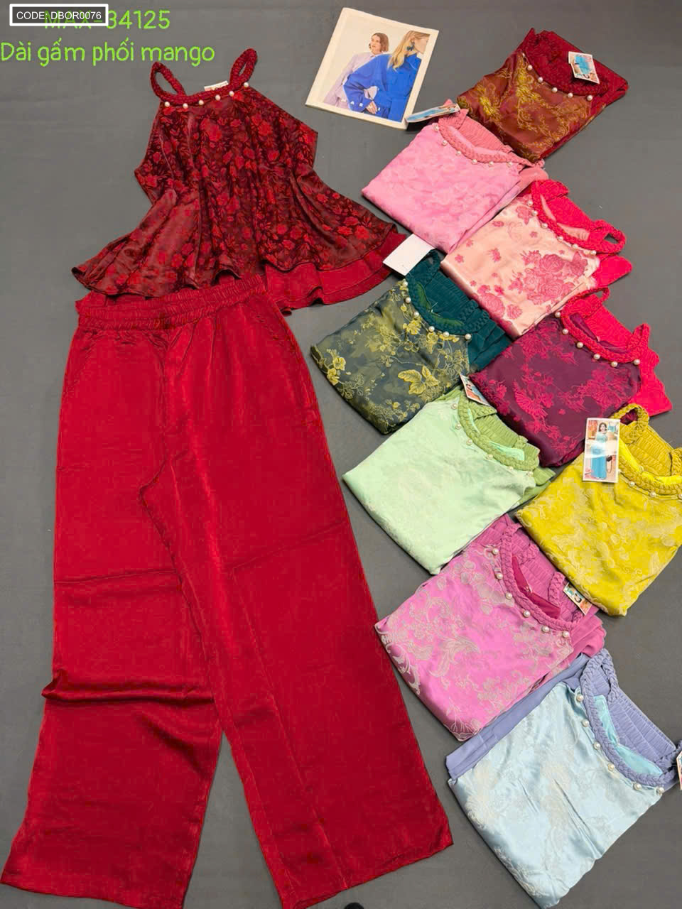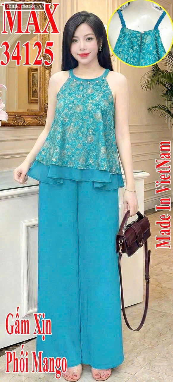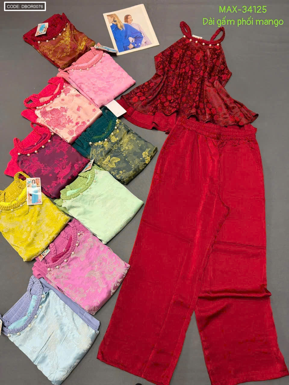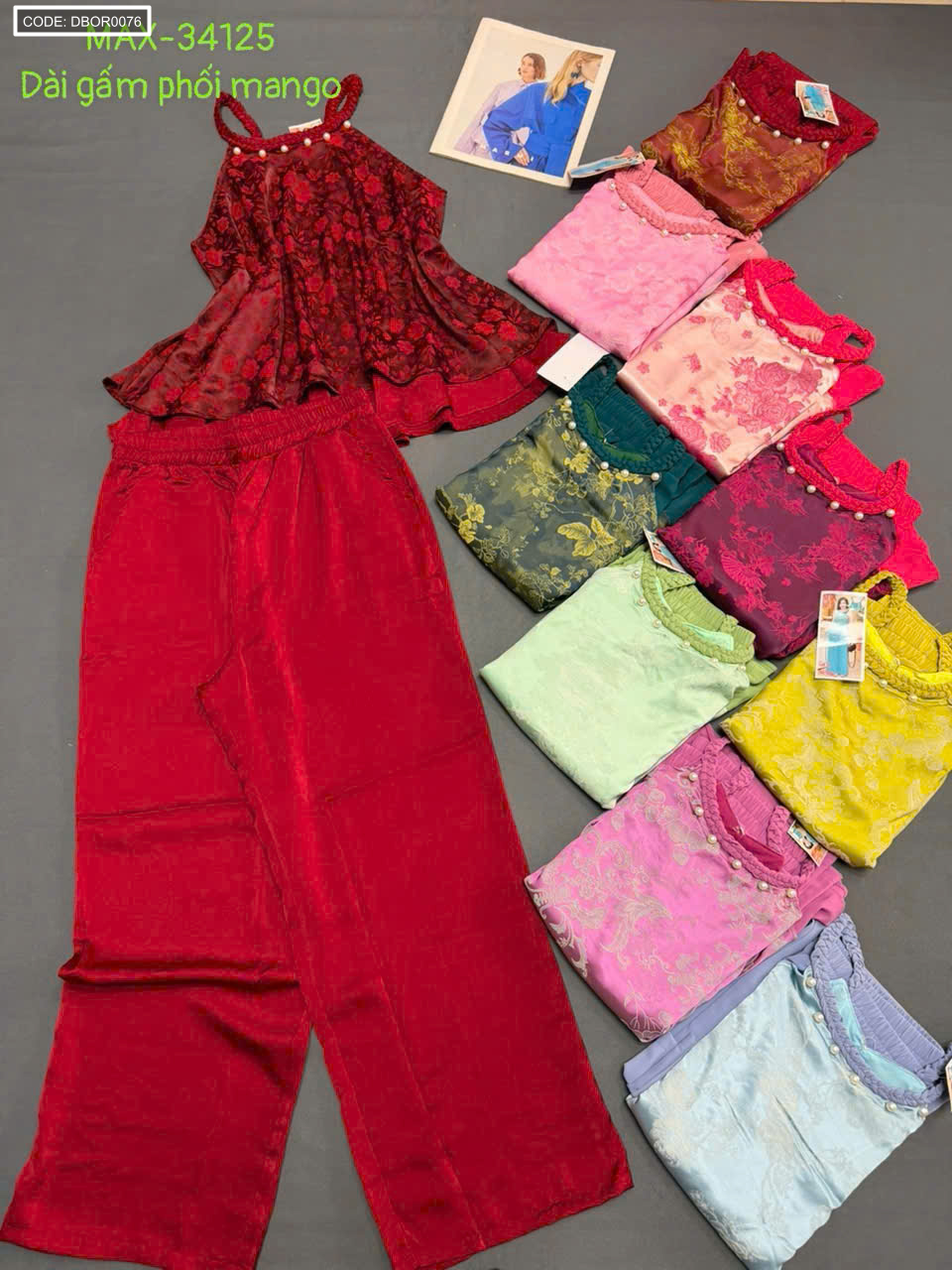 Đồ bộ nữ sát nách quần dài ống rộng Dài gấm phối mango MAX-34125