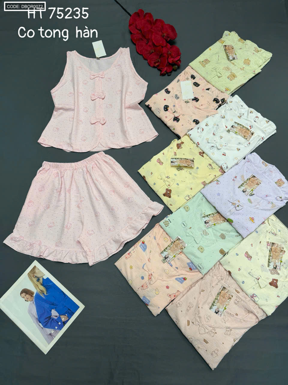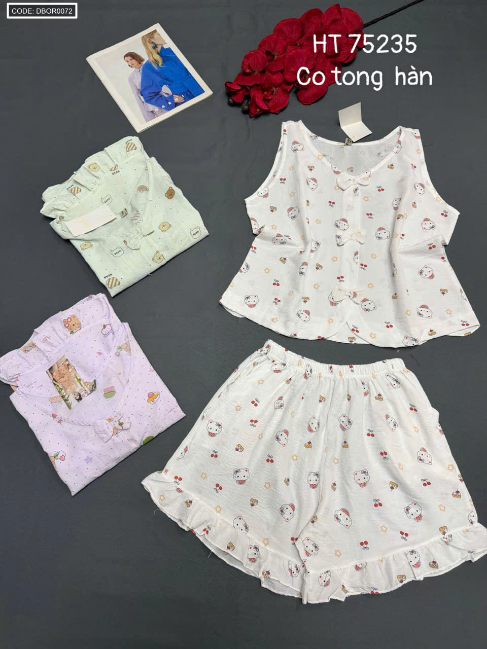 Đồ bộ nữ sát nách tiểu thư quần đùi nơ