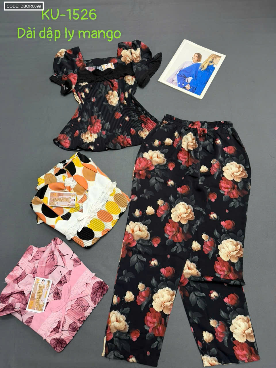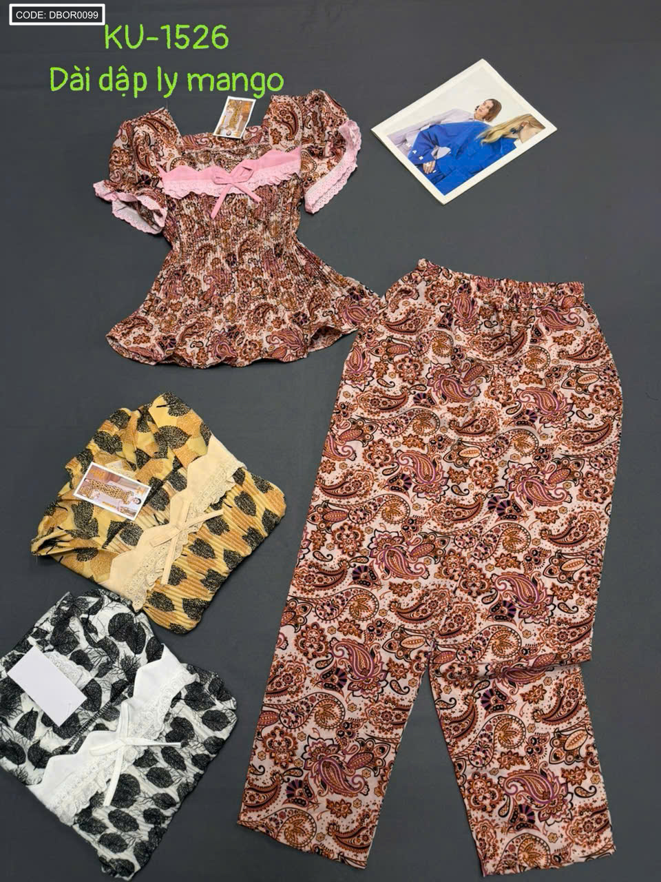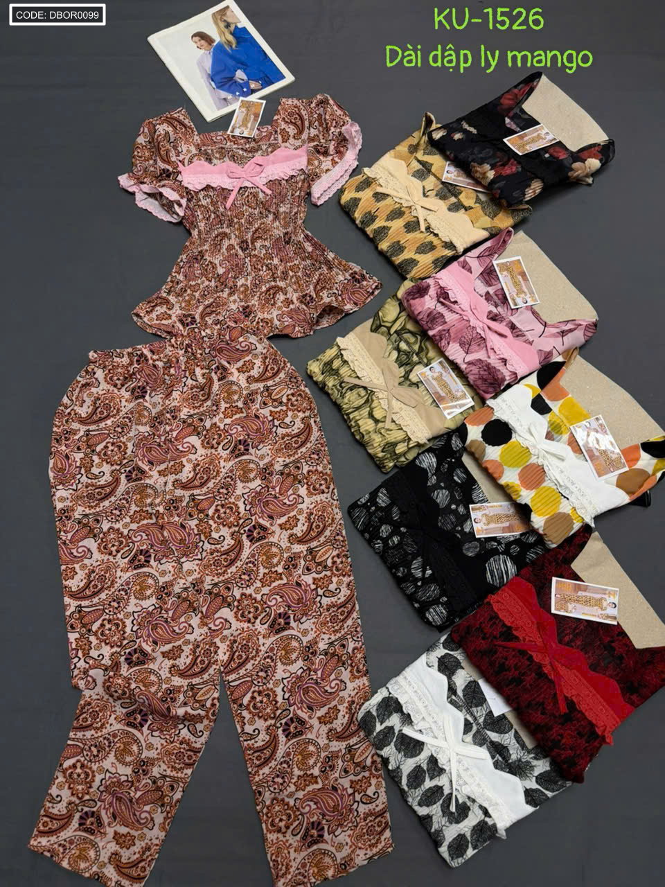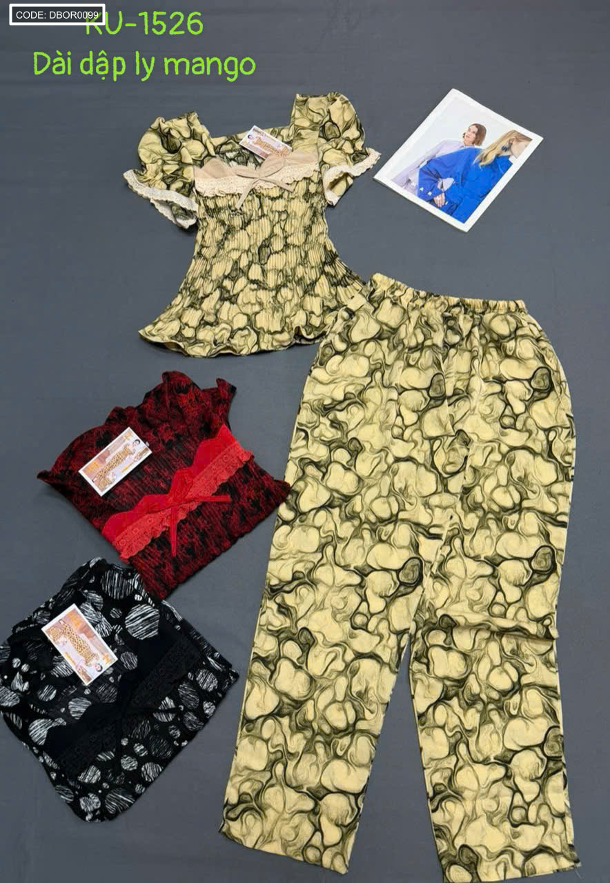 Đồ bộ nữ tay con quần dài áo xếp ly KU1526