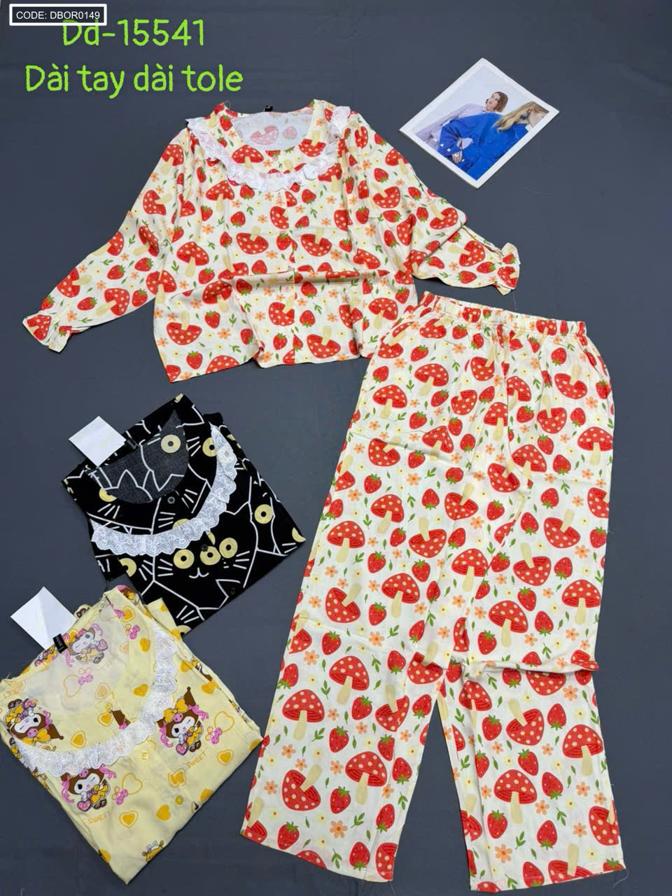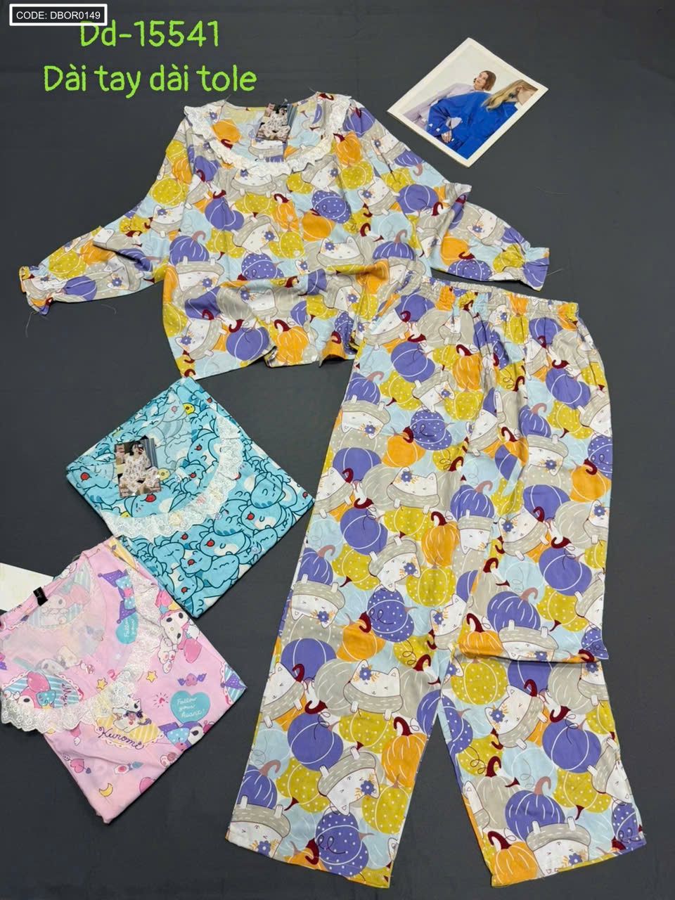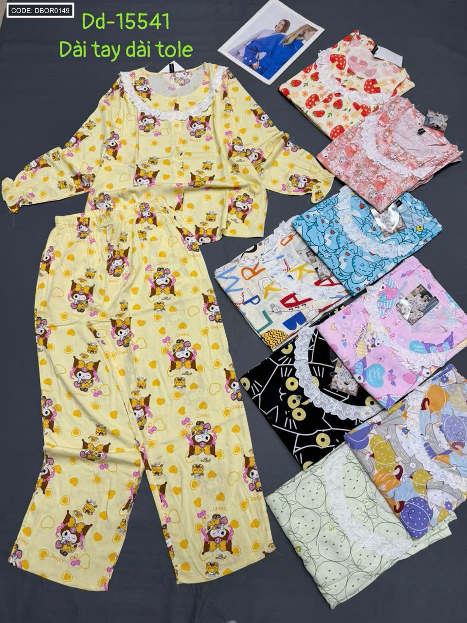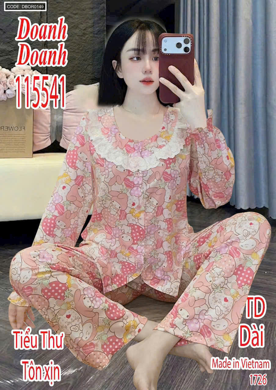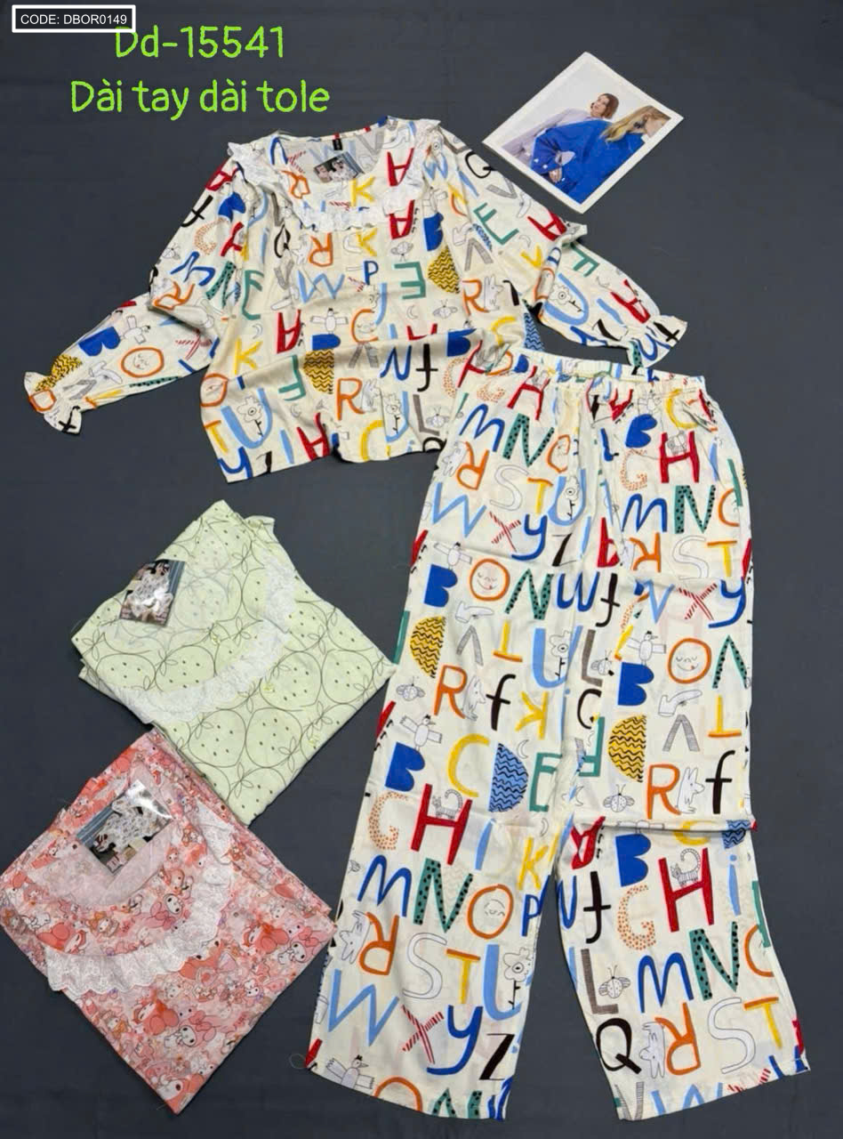 Đồ bộ nữ tay dài quần dài áo phối ren Dd-15541
