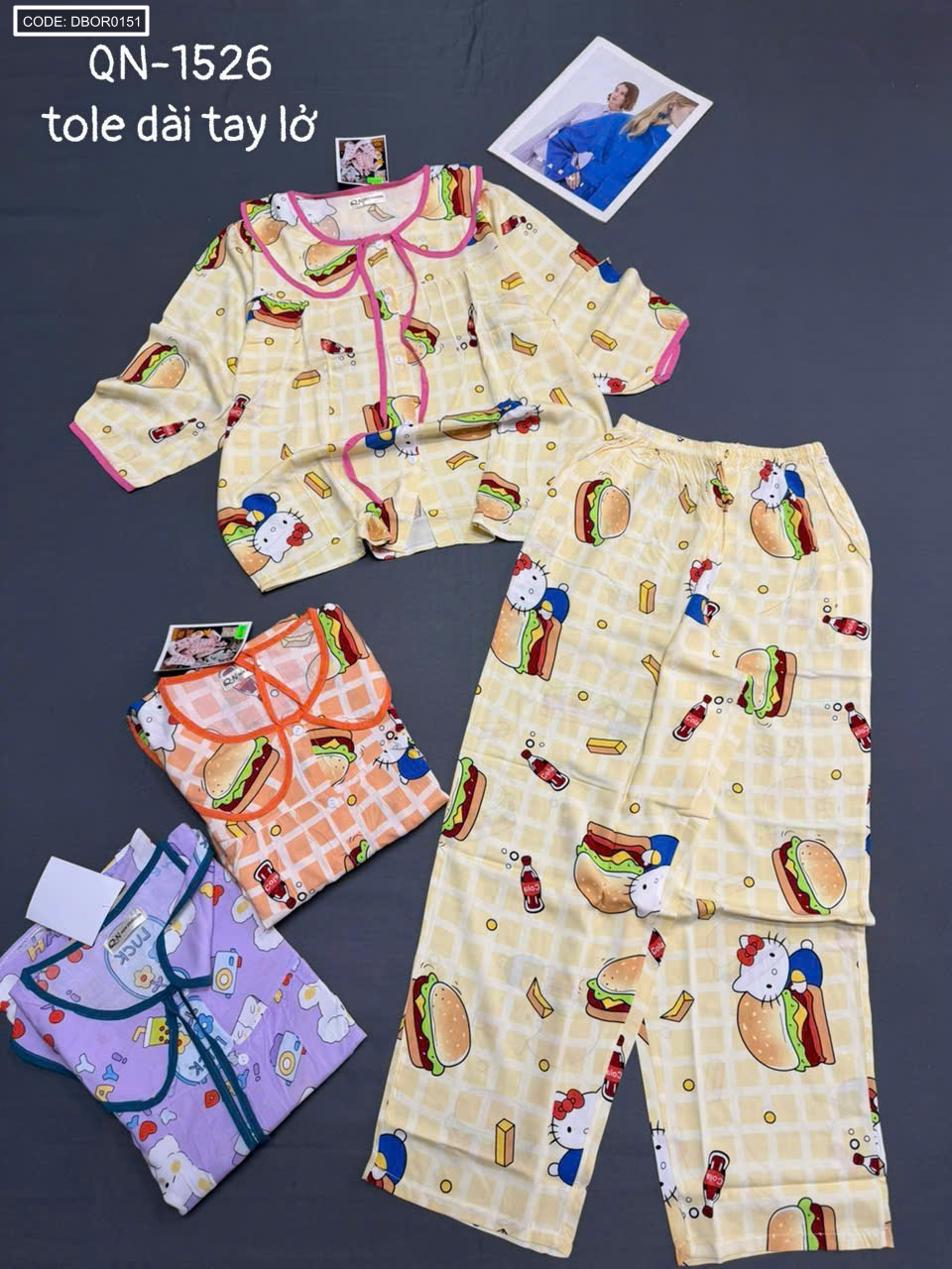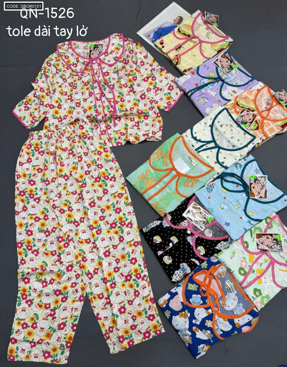 Đồ bộ nữ tay lở quần dài vải tole QN-1526