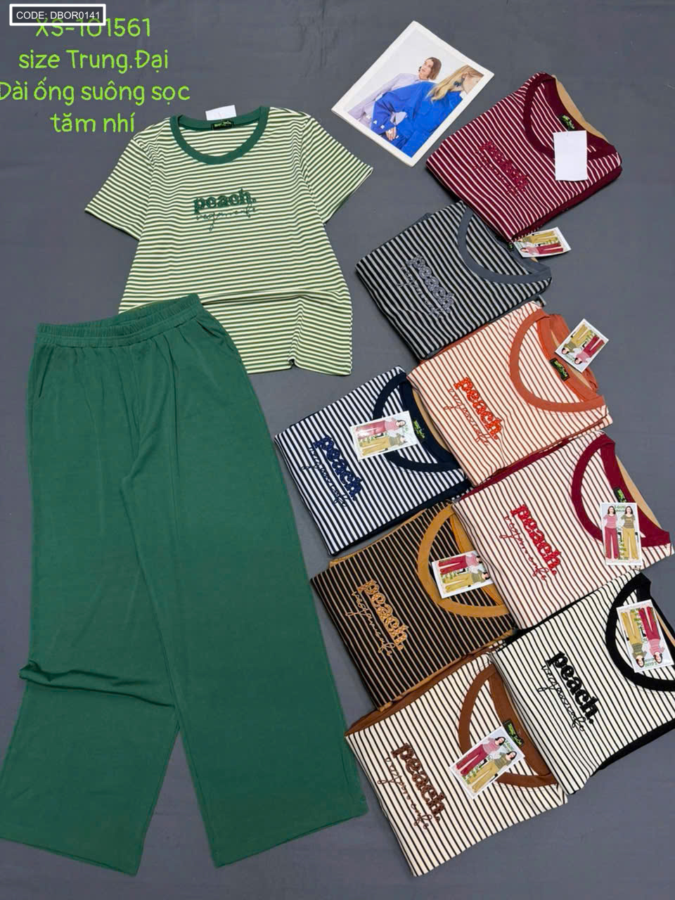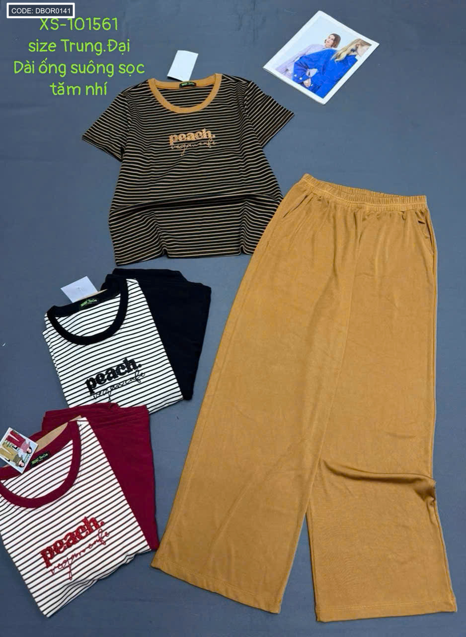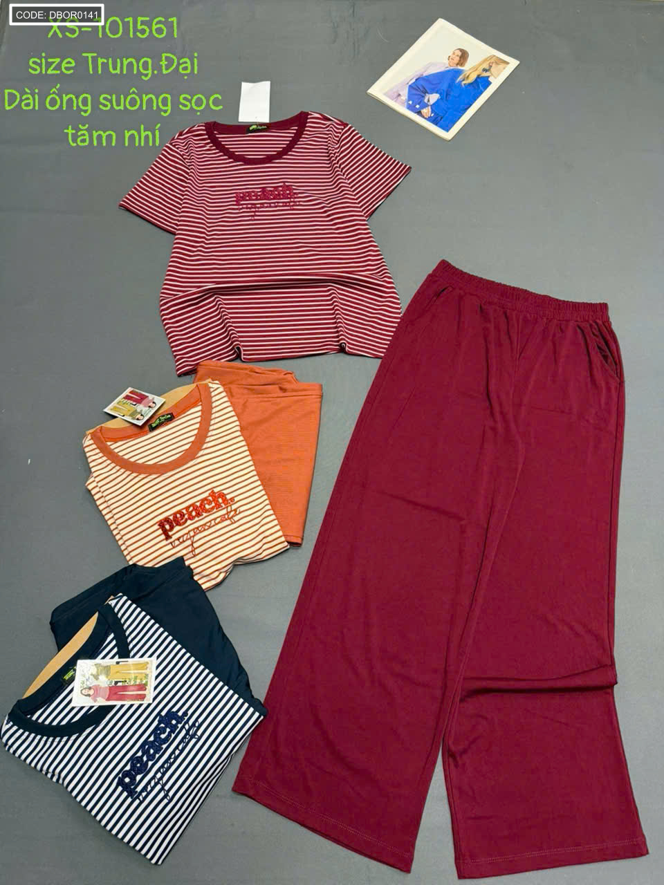 Đồ bộ nữ tay ngắn quần dài ống suông sọc tăm nhí XS-101561